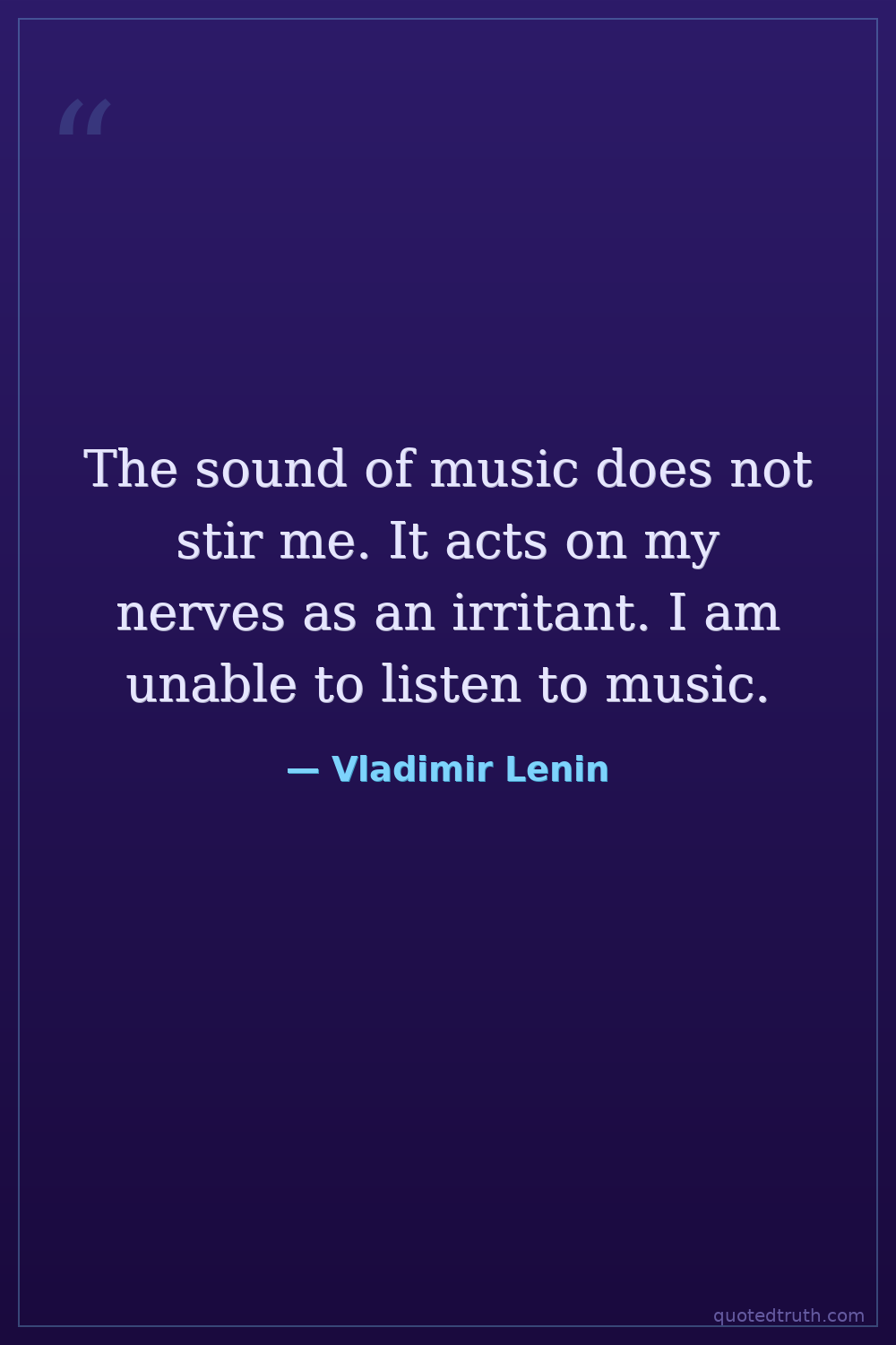 The sound of music does not stir me. It acts on my nerves as an irritant. I am unable to listen to music.