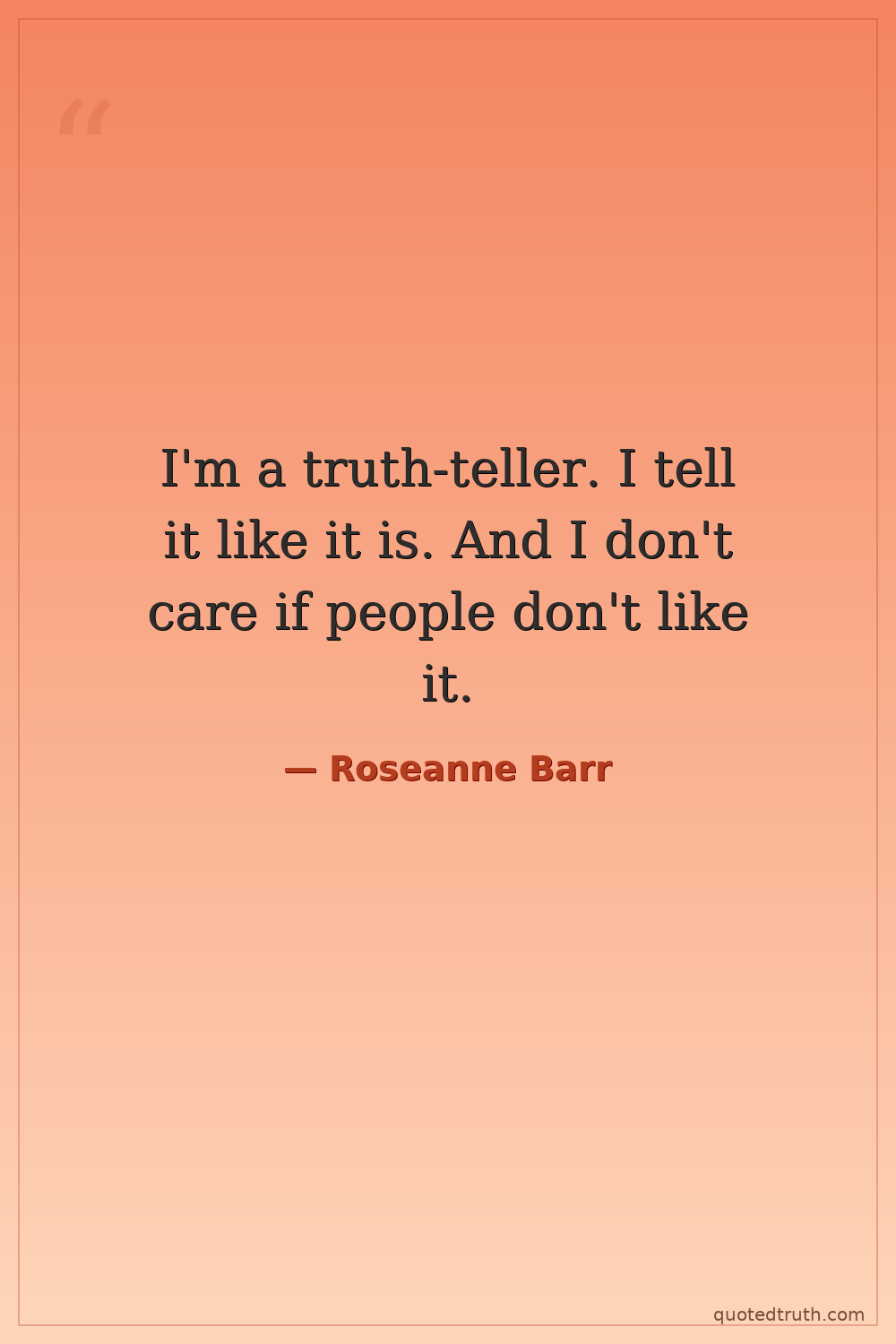 I'm a truth-teller. I tell it like it is. And I don't care if people don't like it.