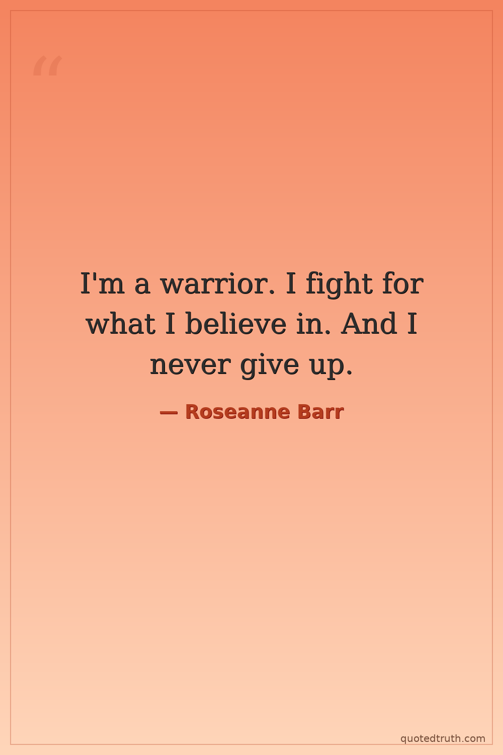 I'm a warrior. I fight for what I believe in. And I never give up.