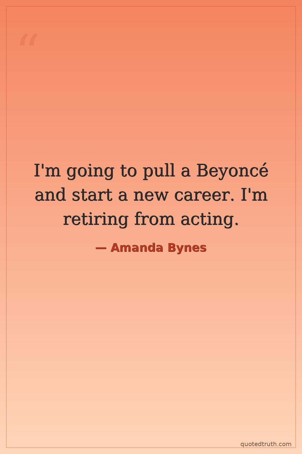 I'm going to pull a Beyoncé and start a new career. I'm retiring from acting.