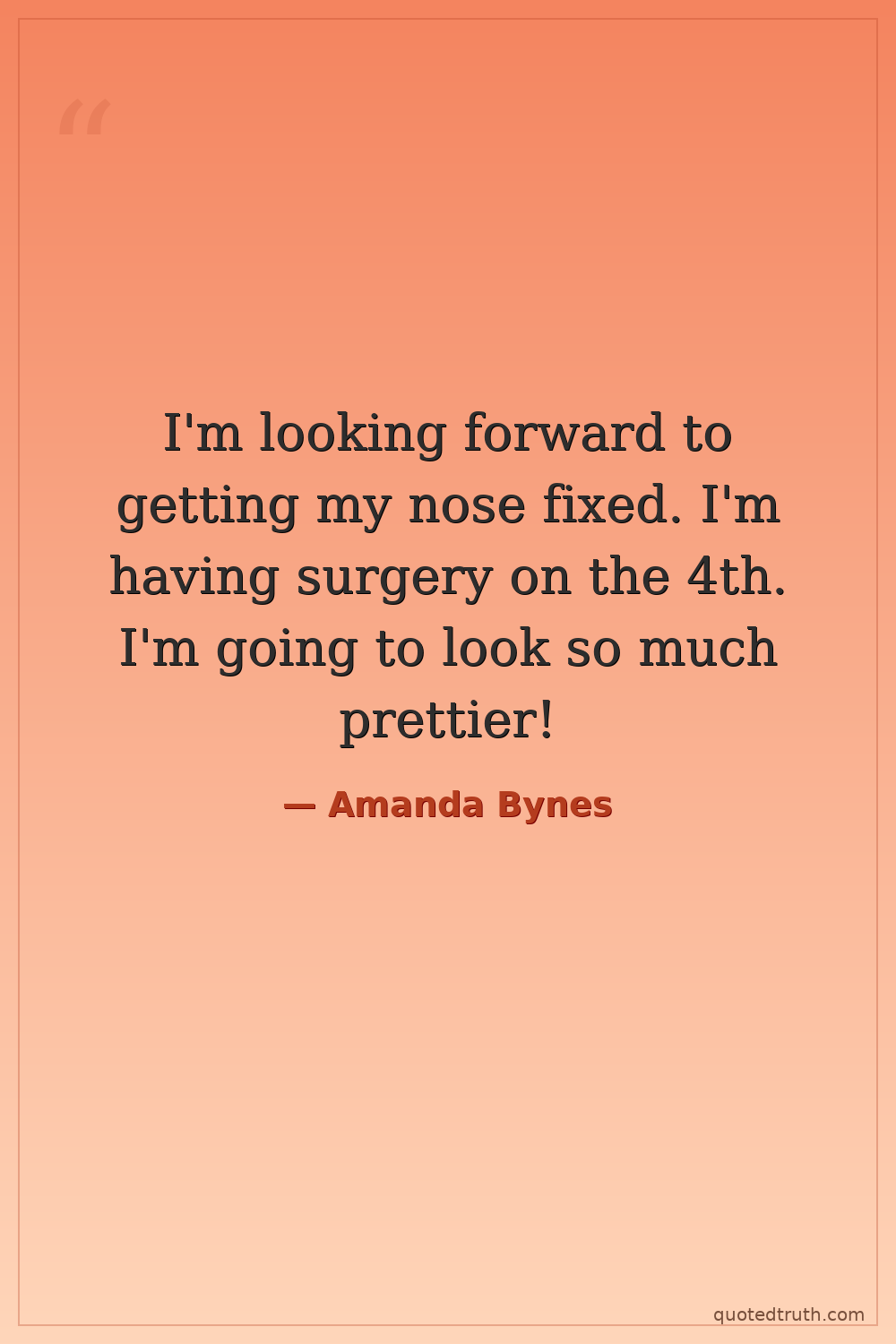 I'm looking forward to getting my nose fixed. I'm having surgery on the 4th. I'm going to look so much prettier!