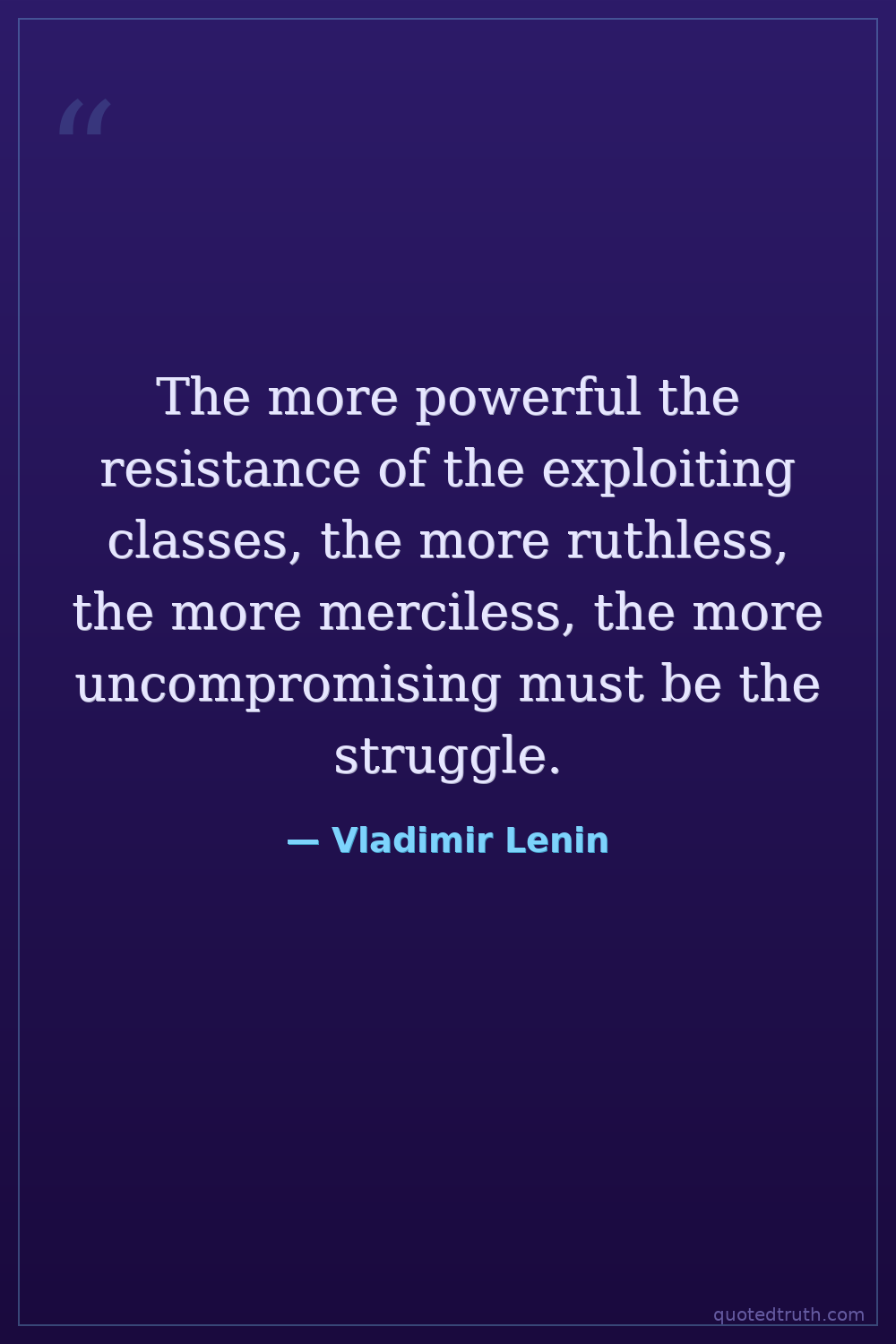 The more powerful the resistance of the exploiting classes, the more ruthless, the more merciless, the more uncompromising must be the struggle.