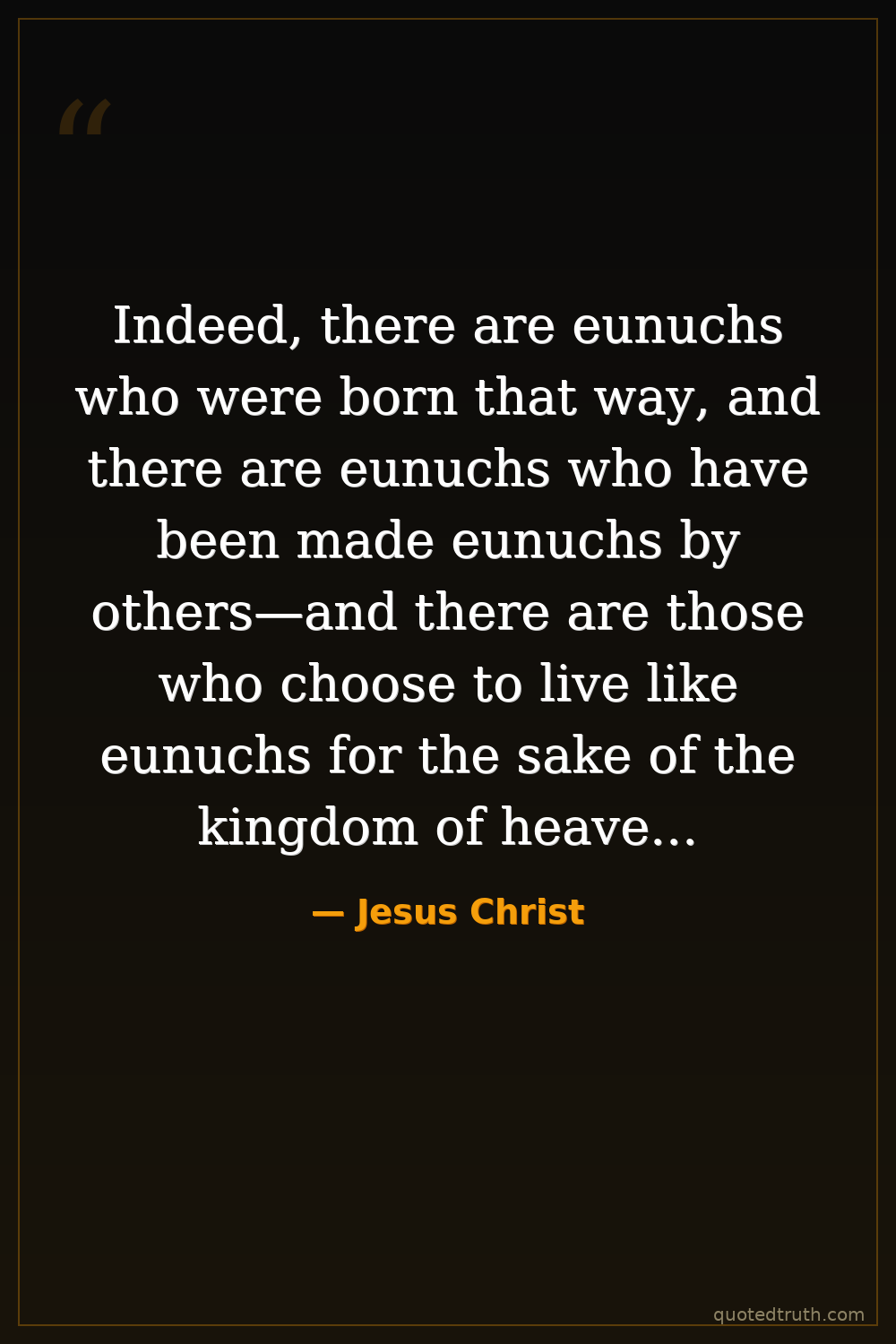 Indeed, there are eunuchs who were born that way, and there are eunuchs who have been made eunuchs by others—and there are those who choose to live like eunuchs for the sake of the kingdom of heaven. The one who can accept this should accept it.
