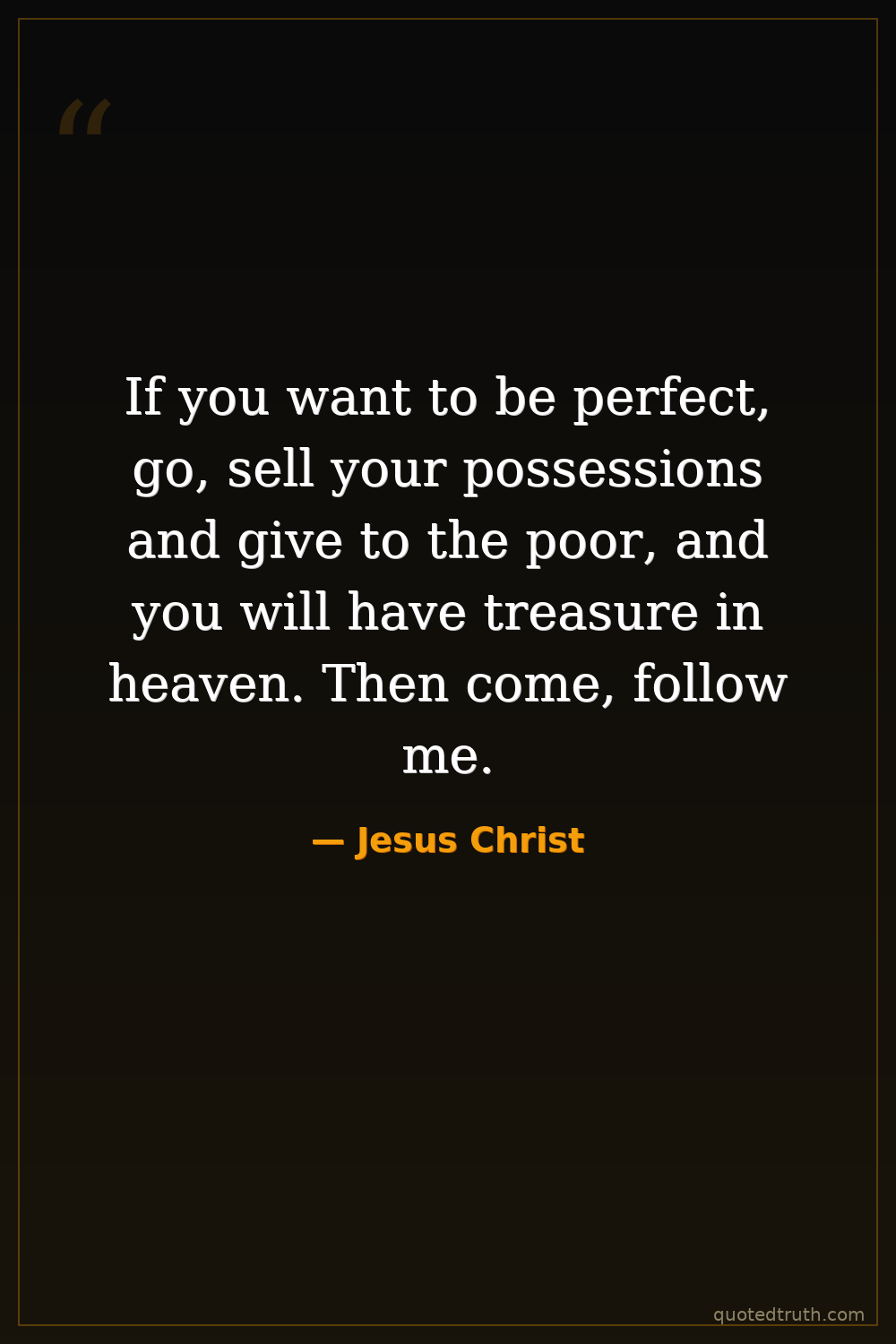 If you want to be perfect, go, sell your possessions and give to the poor, and you will have treasure in heaven. Then come, follow me.