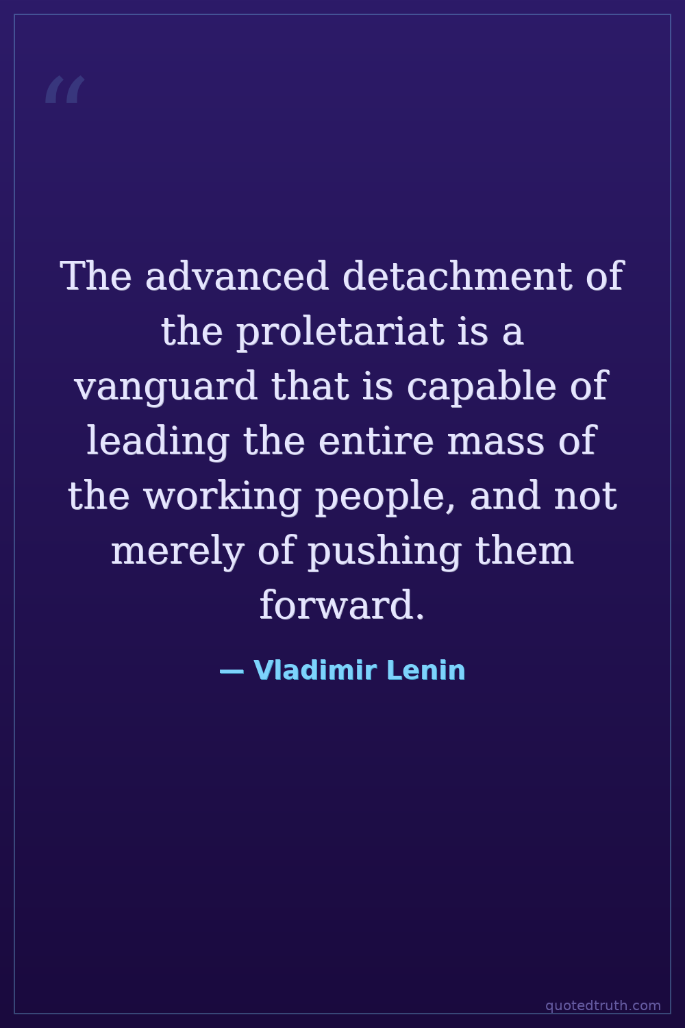 The advanced detachment of the proletariat is a vanguard that is capable of leading the entire mass of the working people, and not merely of pushing them forward.