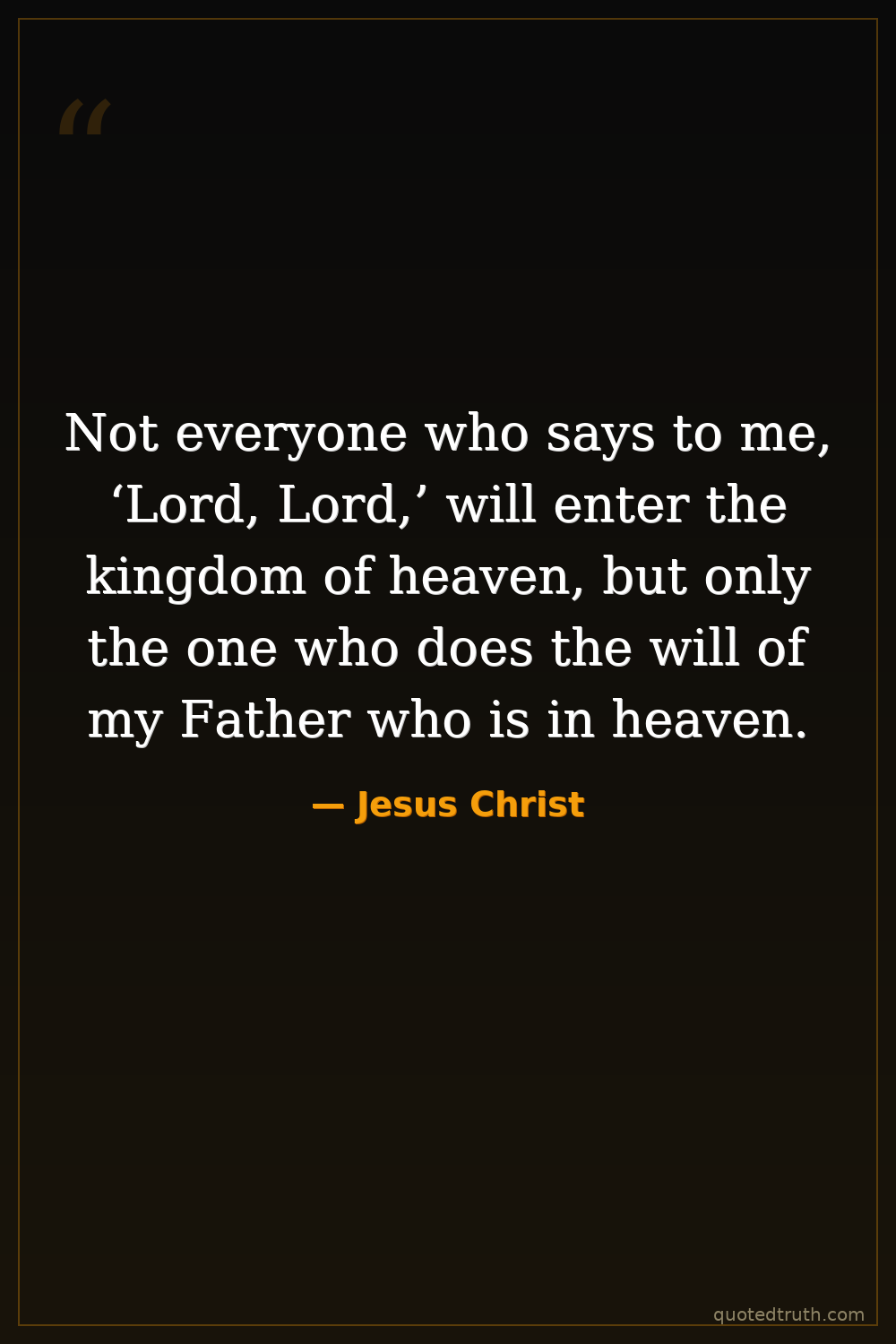 Not everyone who says to me, ‘Lord, Lord,’ will enter the kingdom of heaven, but only the one who does the will of my Father who is in heaven.