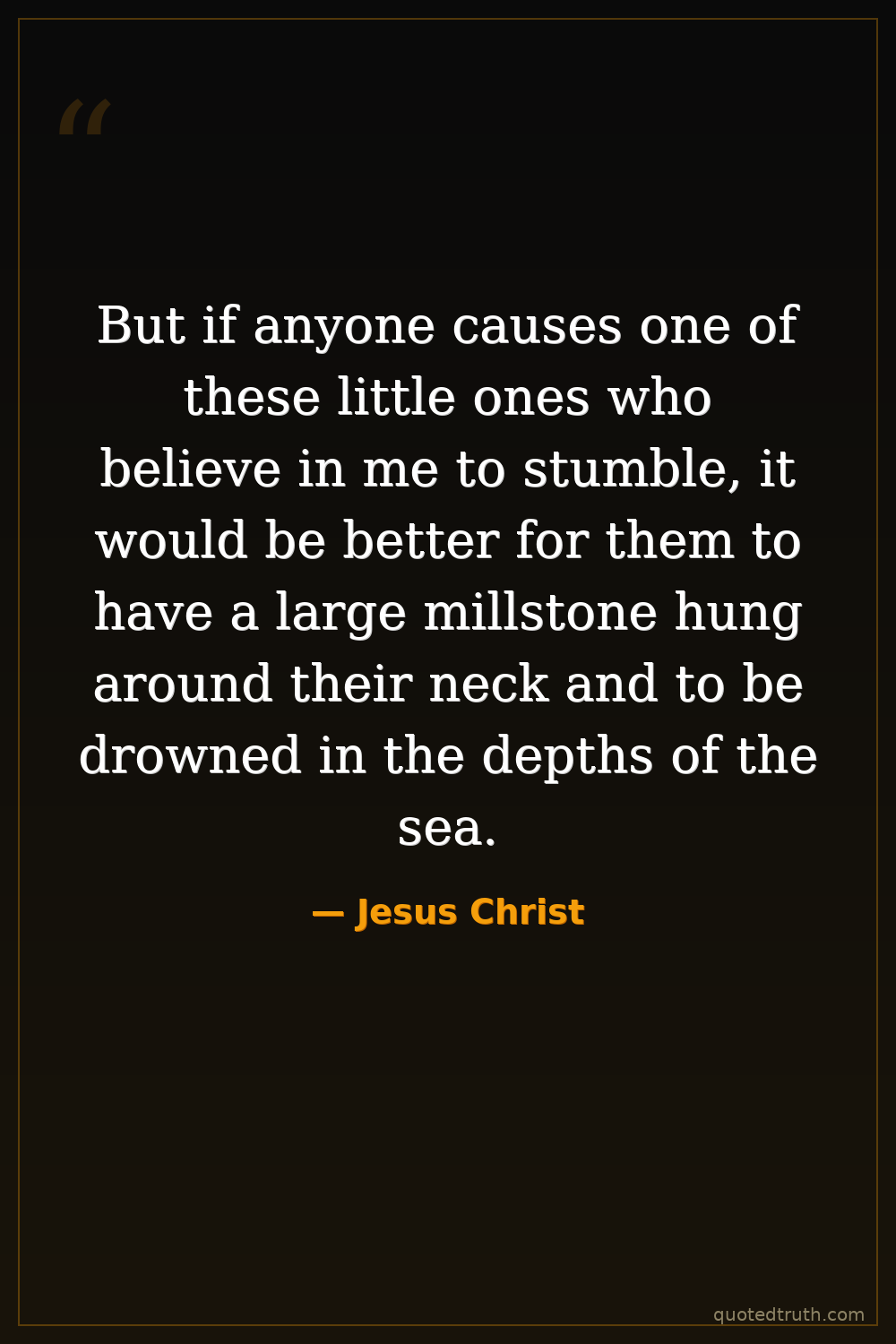 But if anyone causes one of these little ones who believe in me to stumble, it would be better for them to have a large millstone hung around their neck and to be drowned in the depths of the sea.