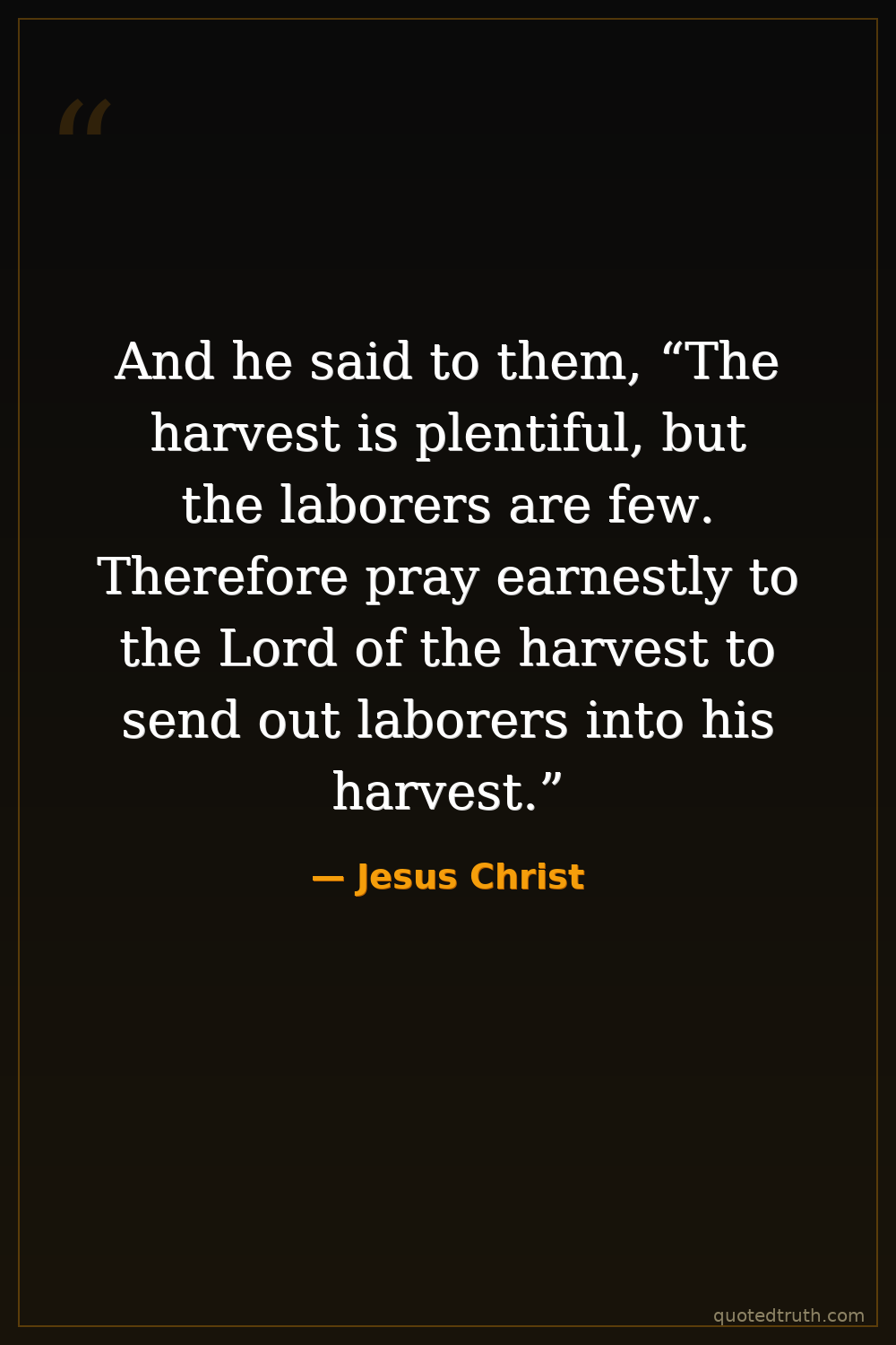 And he said to them, “The harvest is plentiful, but the laborers are few. Therefore pray earnestly to the Lord of the harvest to send out laborers into his harvest.”