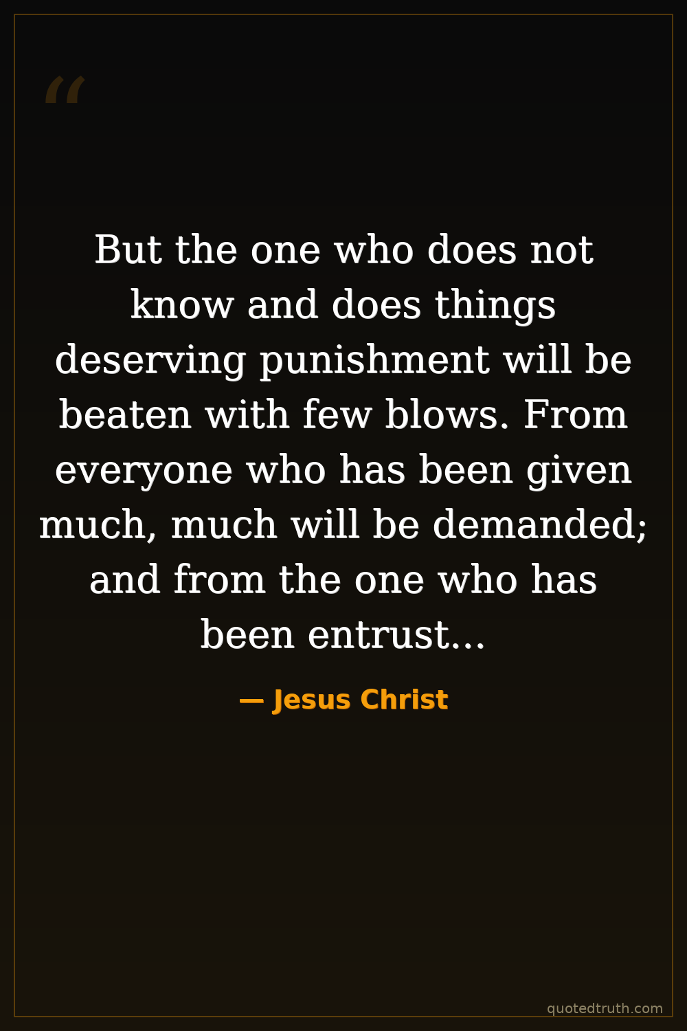 But the one who does not know and does things deserving punishment will be beaten with few blows. From everyone who has been given much, much will be demanded; and from the one who has been entrusted with much, much more will be asked.