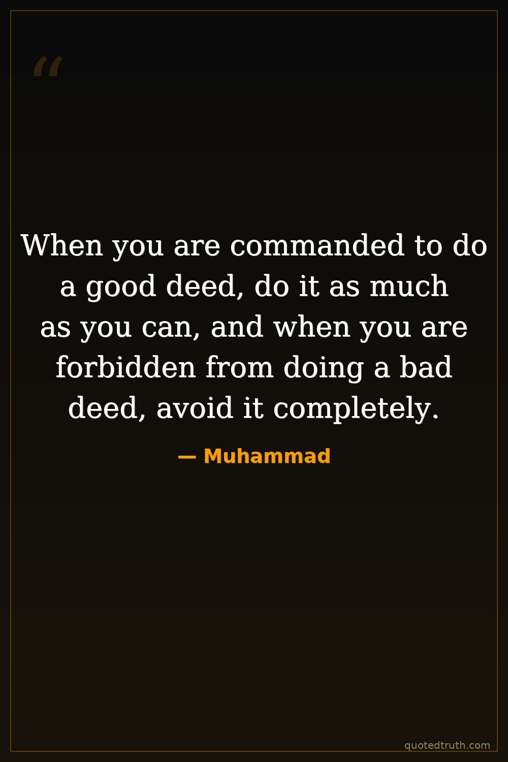 When you are commanded to do a good deed, do it as much as you can, and when you are forbidden from doing a bad deed, avoid it completely.