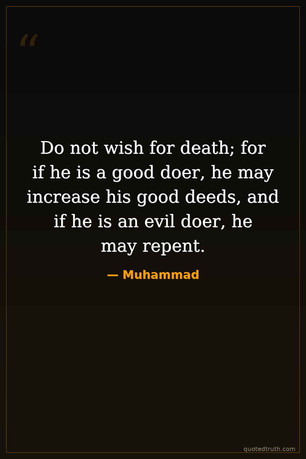 Do not wish for death; for if he is a good doer, he may increase his good deeds, and if he is an evil doer, he may repent.