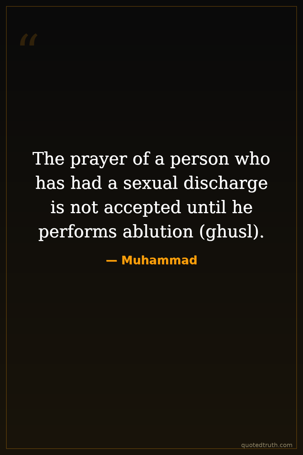 The prayer of a person who has had a sexual discharge is not accepted until he performs ablution (ghusl).