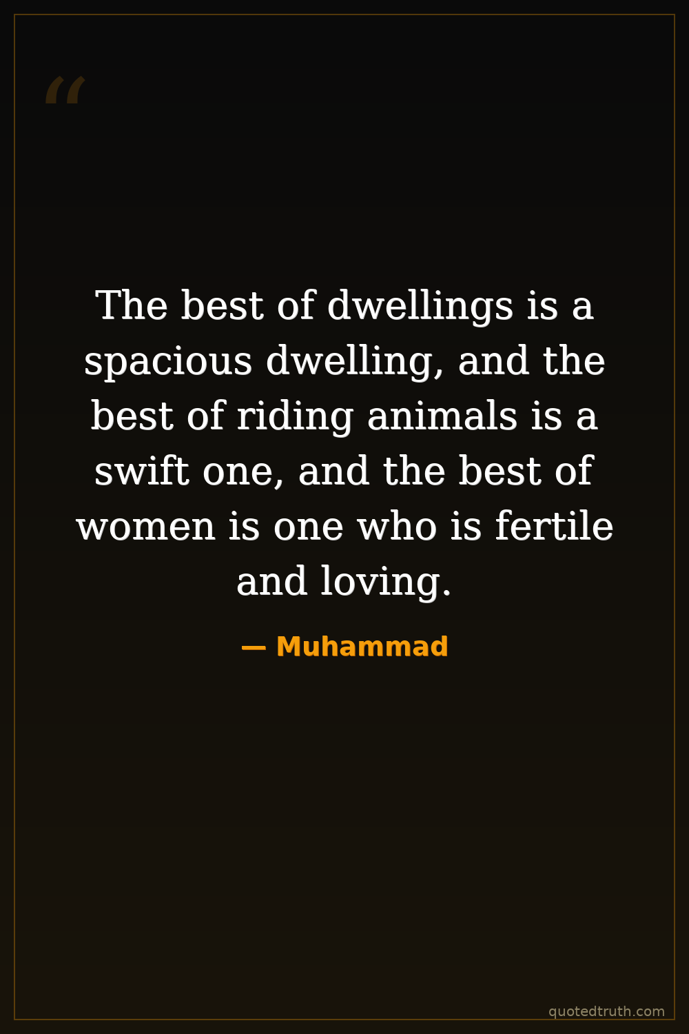 The best of dwellings is a spacious dwelling, and the best of riding animals is a swift one, and the best of women is one who is fertile and loving.