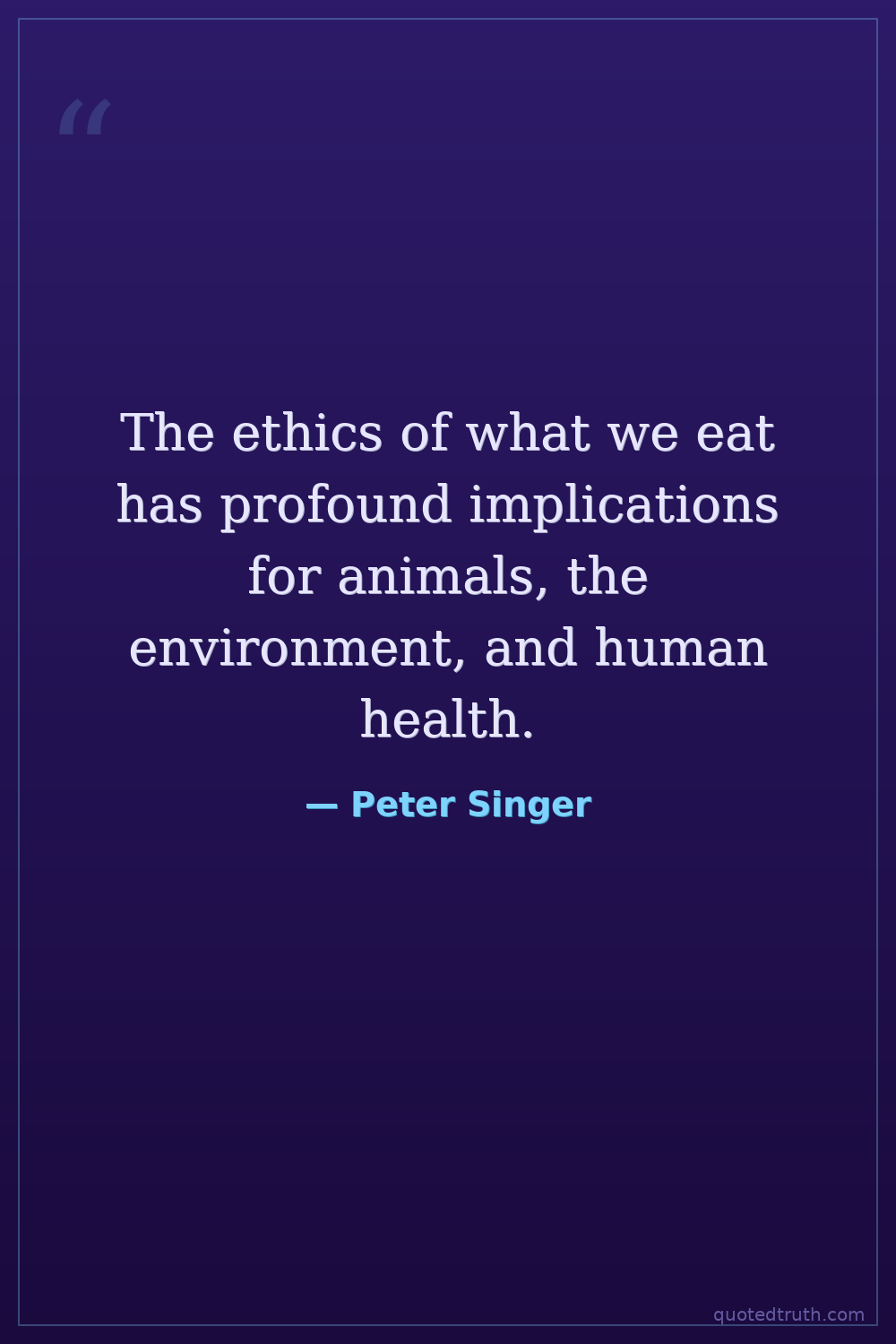 The ethics of what we eat has profound implications for animals, the environment, and human health.