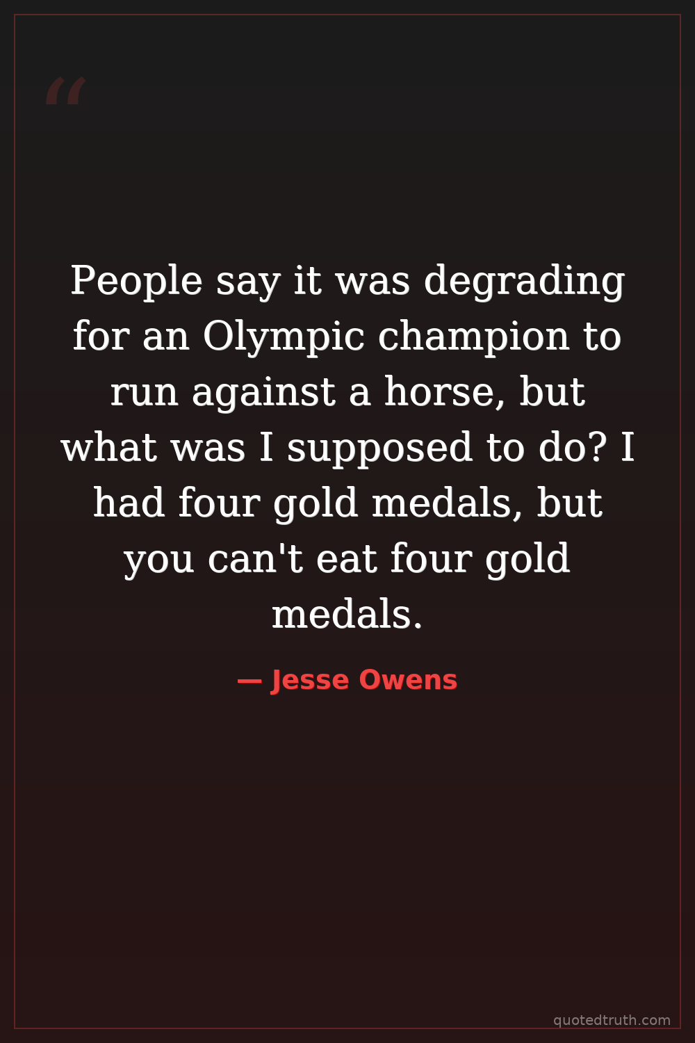 People say it was degrading for an Olympic champion to run against a horse, but what was I supposed to do? I had four gold medals, but you can't eat four gold medals.