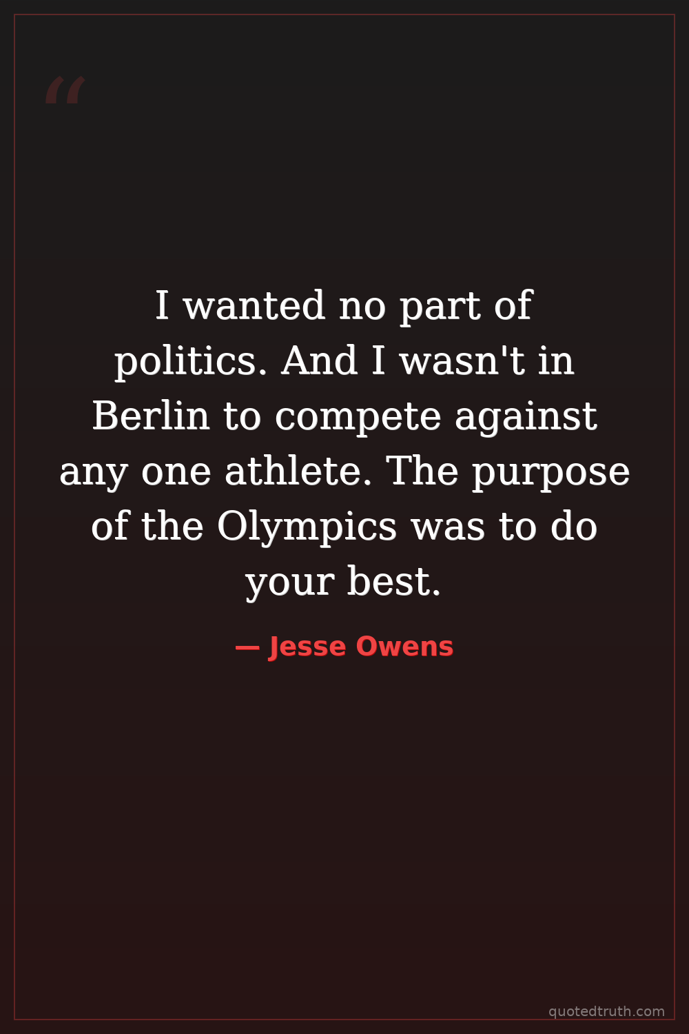 I wanted no part of politics. And I wasn't in Berlin to compete against any one athlete. The purpose of the Olympics was to do your best.