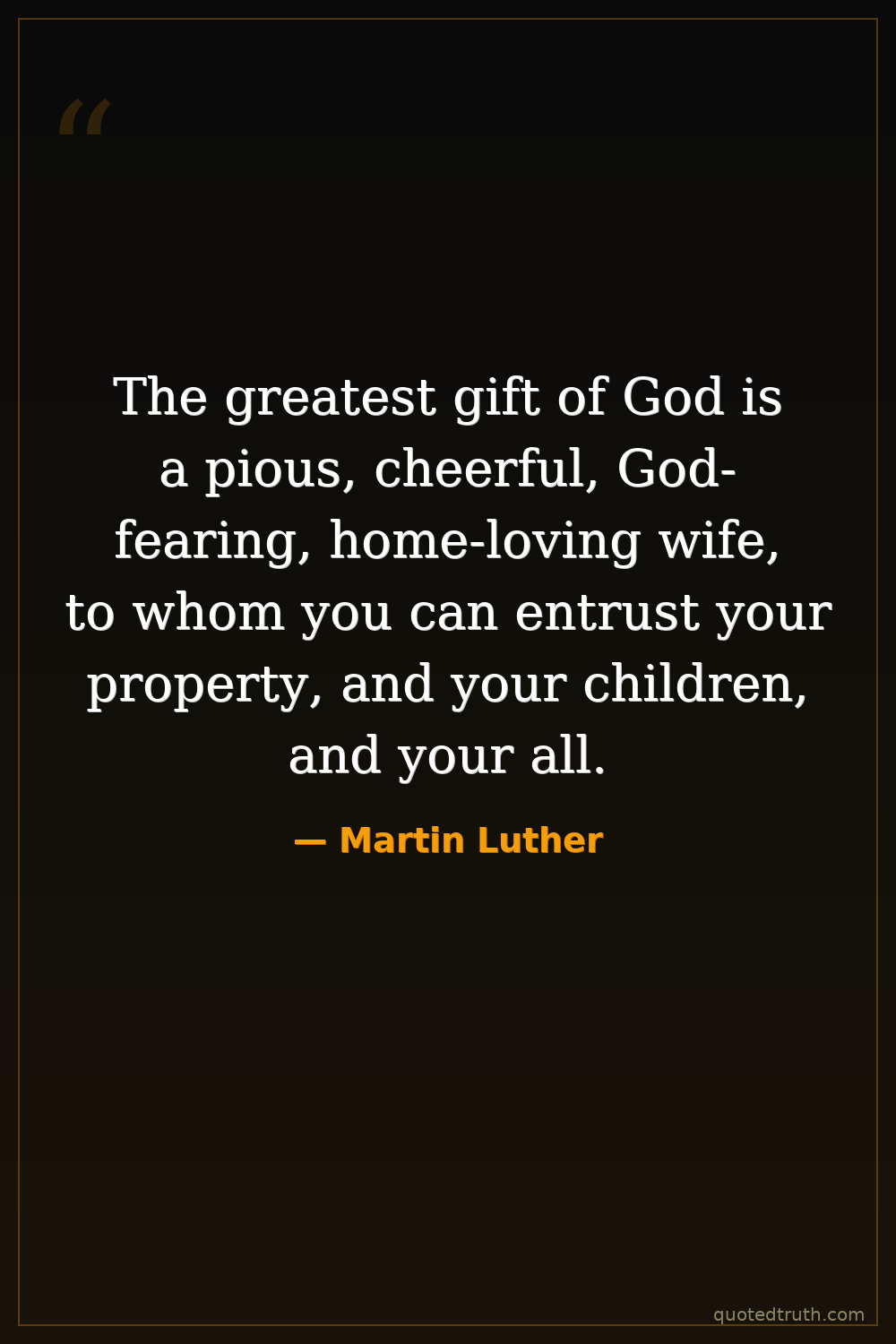 The greatest gift of God is a pious, cheerful, God-fearing, home-loving wife, to whom you can entrust your property, and your children, and your all.