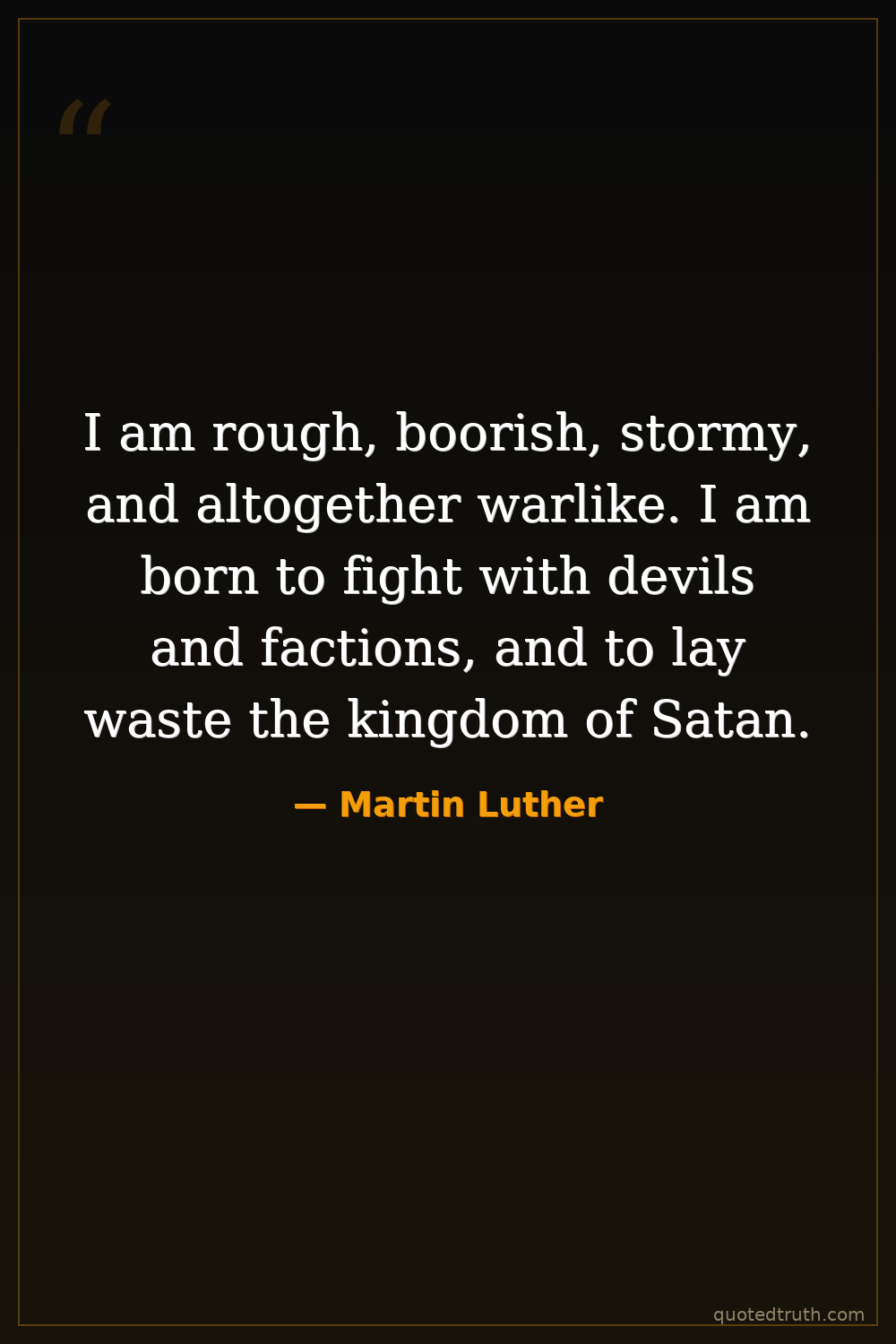 I am rough, boorish, stormy, and altogether warlike. I am born to fight with devils and factions, and to lay waste the kingdom of Satan.