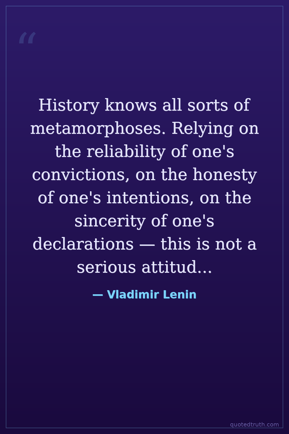 History knows all sorts of metamorphoses. Relying on the reliability of one's convictions, on the honesty of one's intentions, on the sincerity of one's declarations — this is not a serious attitude to politics.