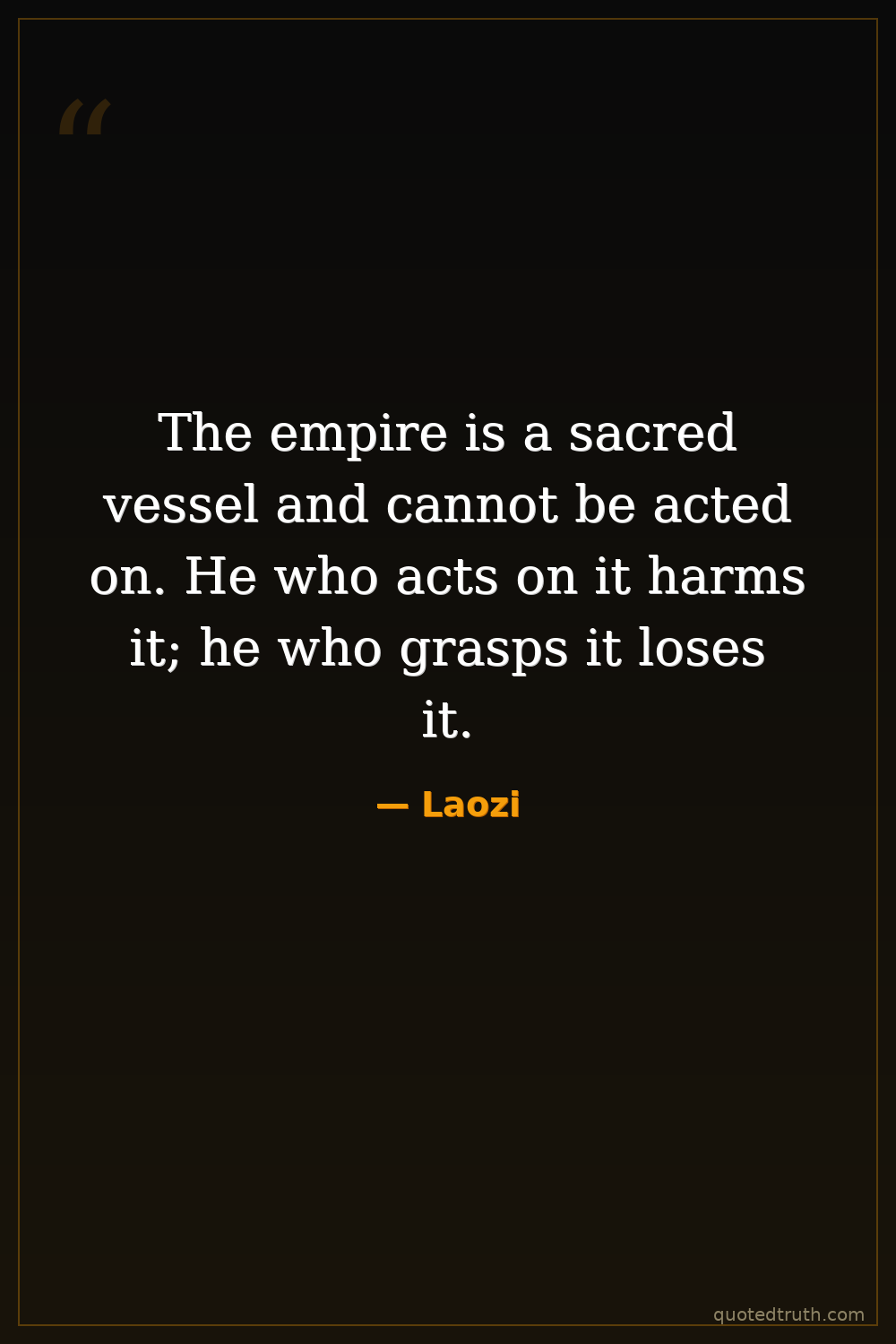 The empire is a sacred vessel and cannot be acted on. He who acts on it harms it; he who grasps it loses it.