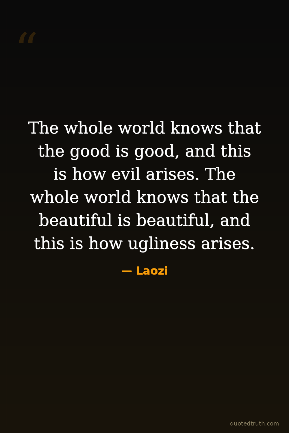 The whole world knows that the good is good, and this is how evil arises. The whole world knows that the beautiful is beautiful, and this is how ugliness arises.