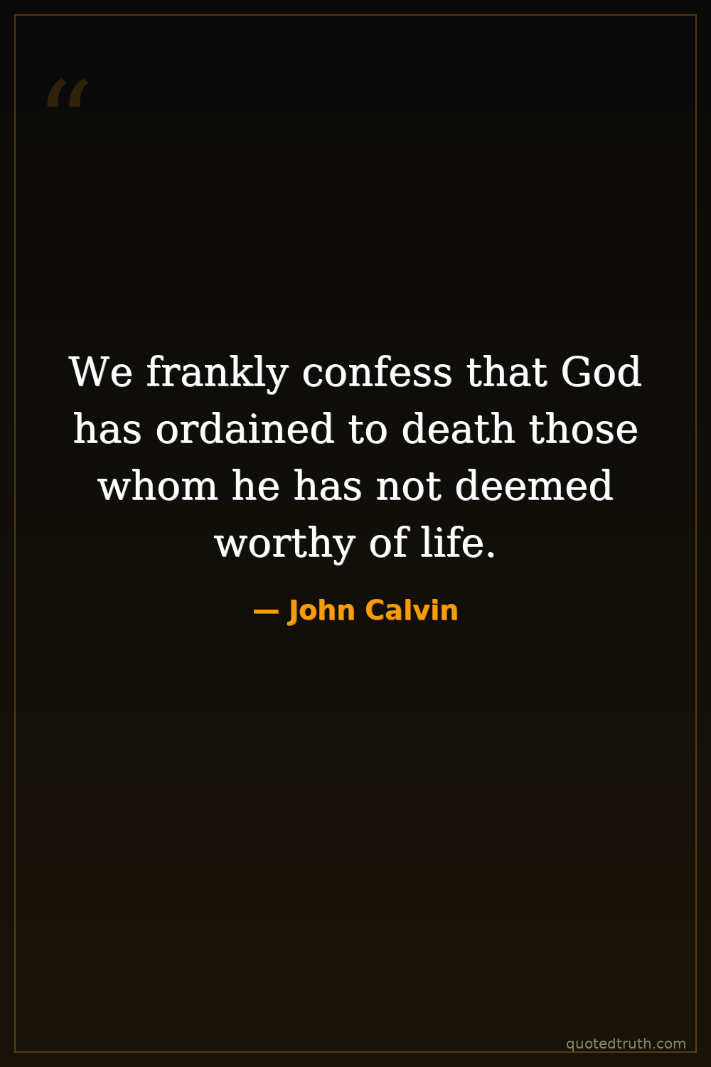 We frankly confess that God has ordained to death those whom he has not deemed worthy of life.