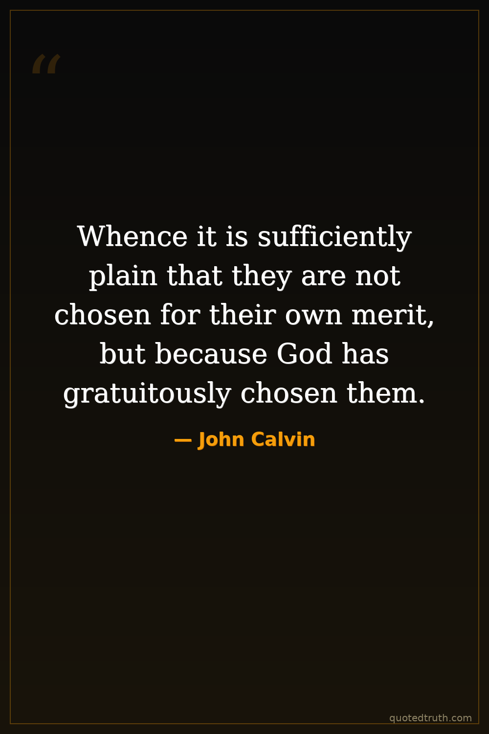 Whence it is sufficiently plain that they are not chosen for their own merit, but because God has gratuitously chosen them.