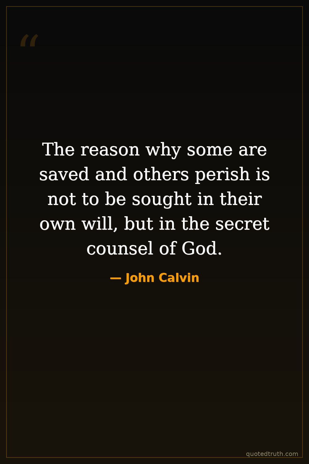 The reason why some are saved and others perish is not to be sought in their own will, but in the secret counsel of God.