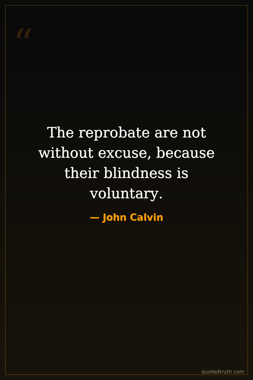The reprobate are not without excuse, because their blindness is voluntary.
