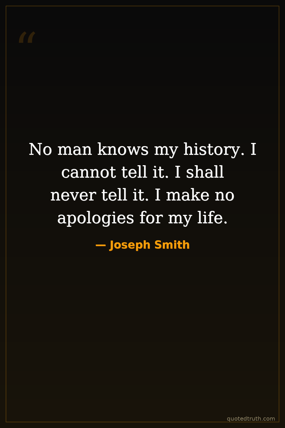 No man knows my history. I cannot tell it. I shall never tell it. I make no apologies for my life.