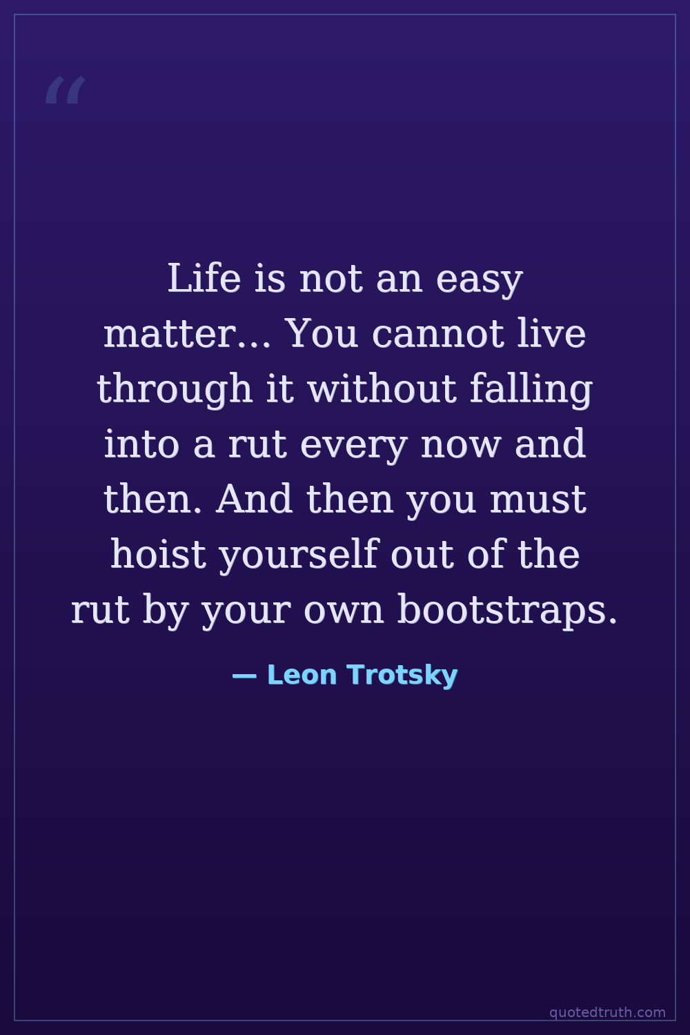 Life is not an easy matter... You cannot live through it without falling into a rut every now and then. And then you must hoist yourself out of the rut by your own bootstraps.