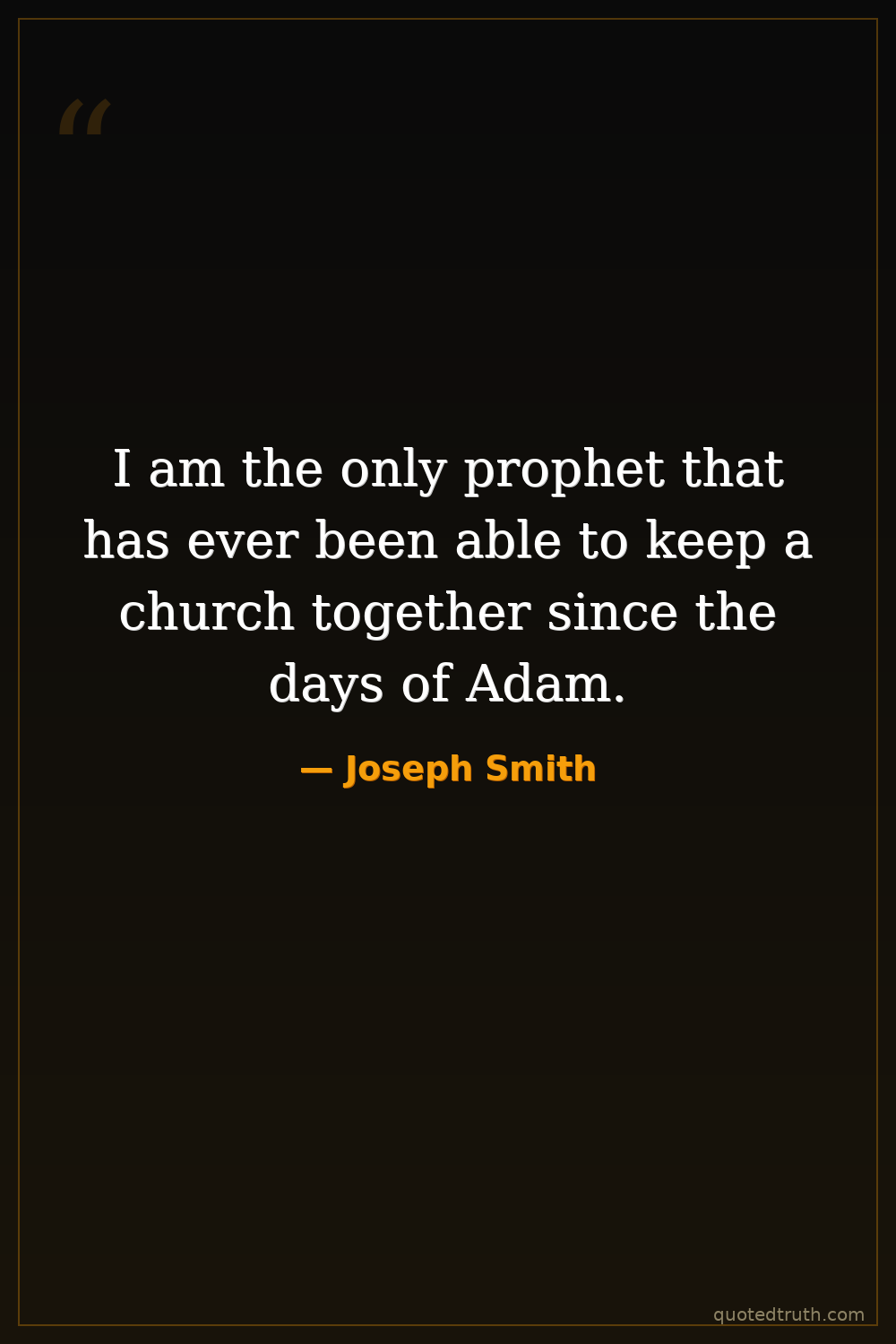I am the only prophet that has ever been able to keep a church together since the days of Adam.