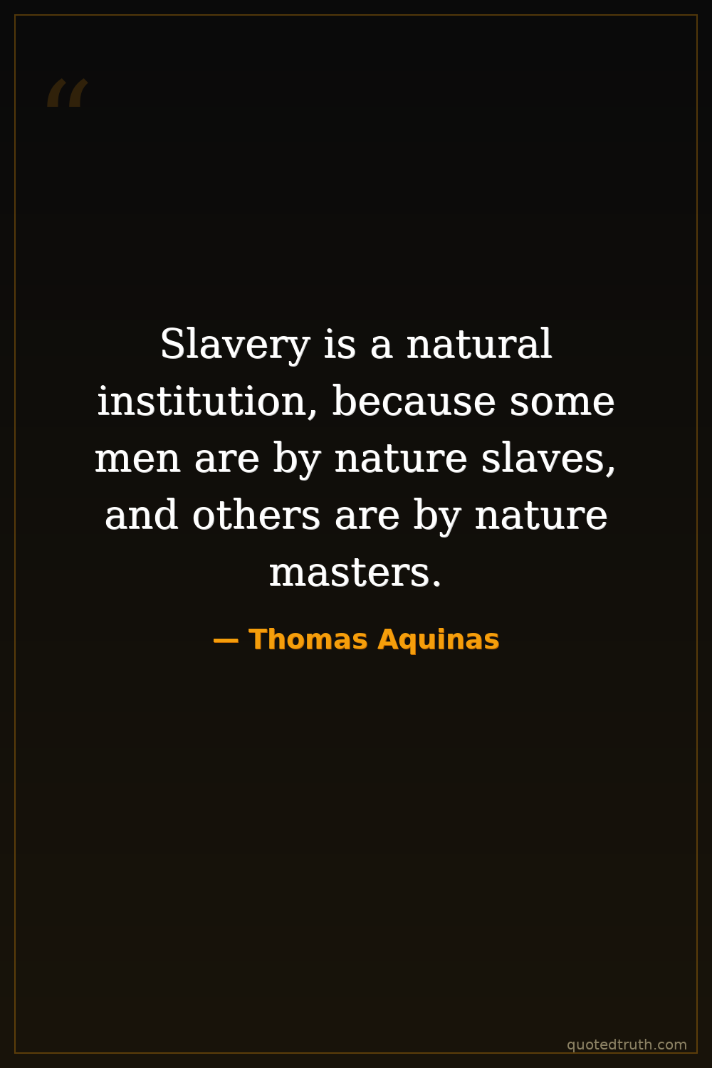Slavery is a natural institution, because some men are by nature slaves, and others are by nature masters.