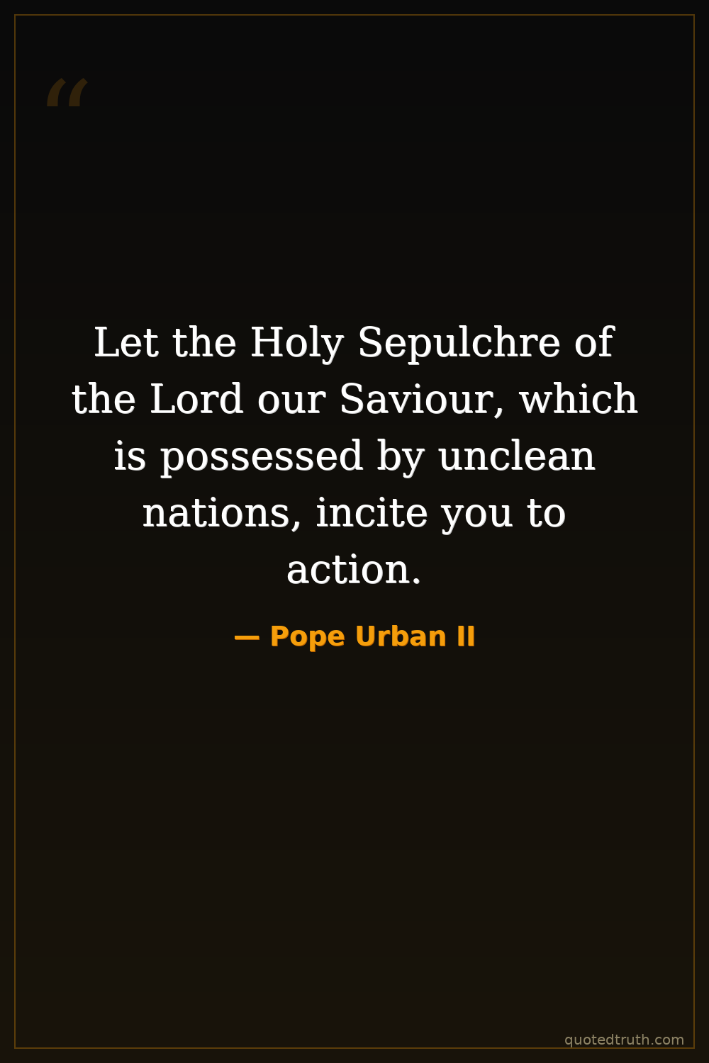 Let the Holy Sepulchre of the Lord our Saviour, which is possessed by unclean nations, incite you to action.