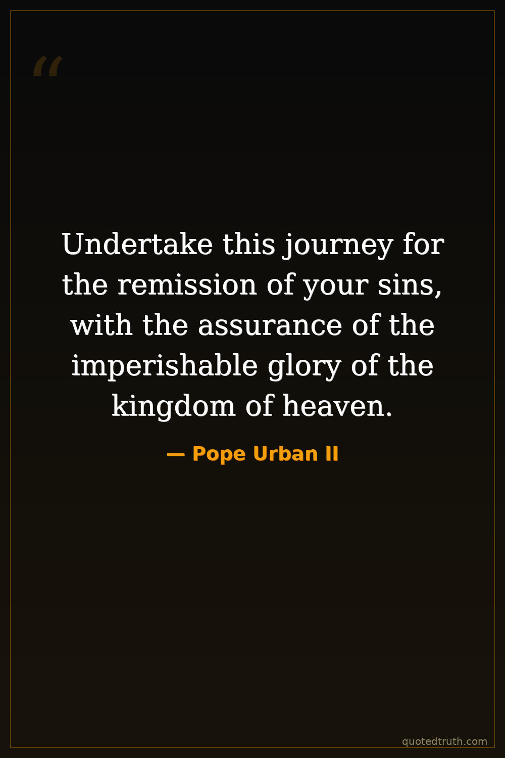 Undertake this journey for the remission of your sins, with the assurance of the imperishable glory of the kingdom of heaven.