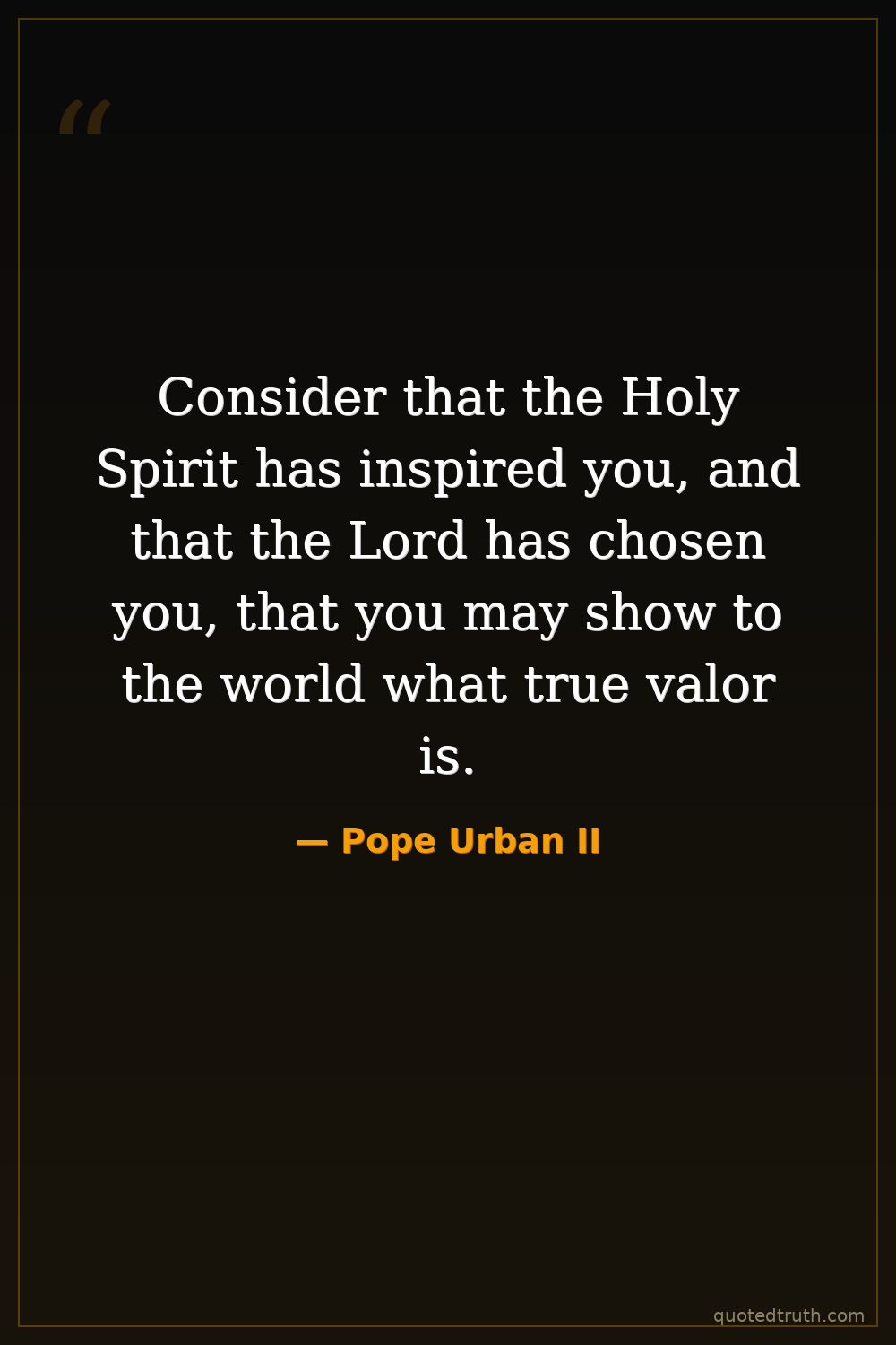 Consider that the Holy Spirit has inspired you, and that the Lord has chosen you, that you may show to the world what true valor is.