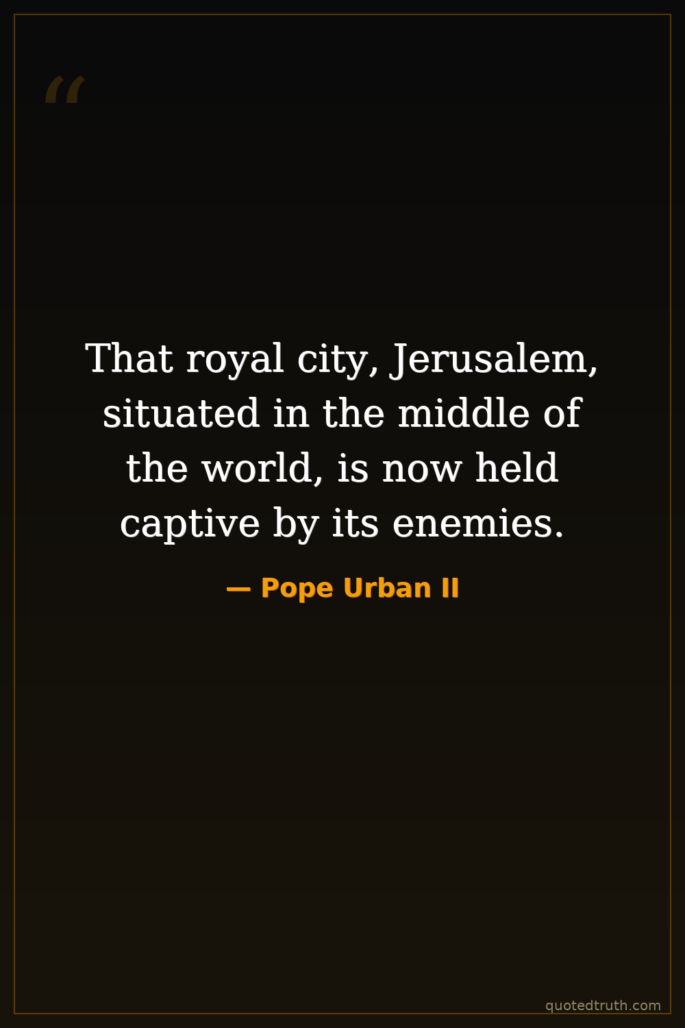 That royal city, Jerusalem, situated in the middle of the world, is now held captive by its enemies.