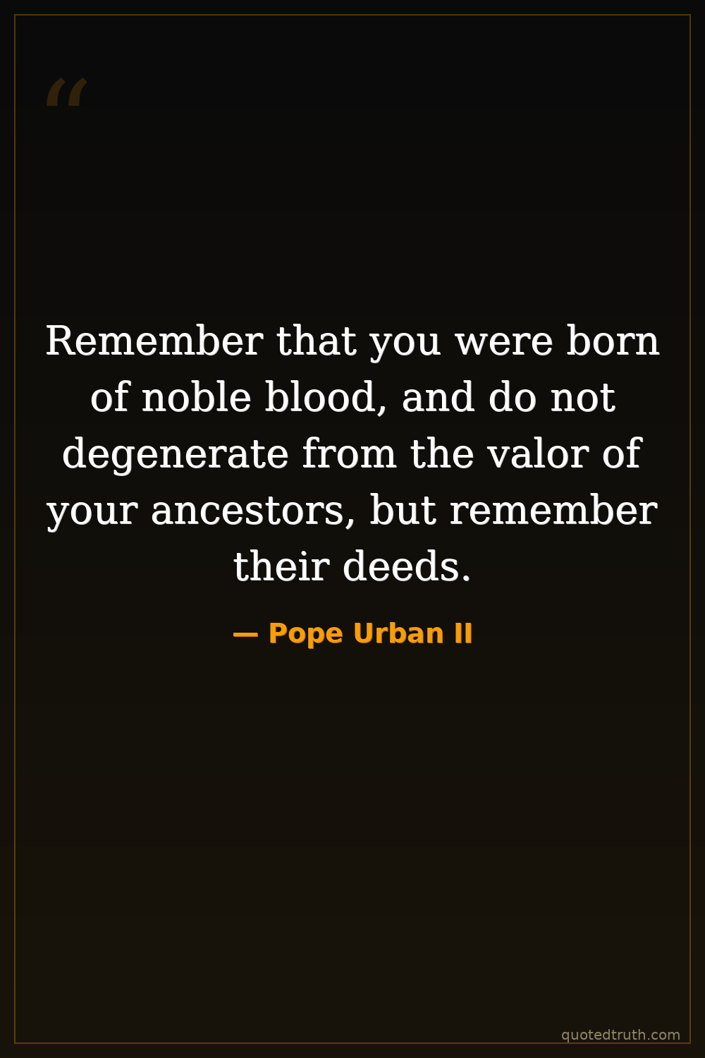 Remember that you were born of noble blood, and do not degenerate from the valor of your ancestors, but remember their deeds.
