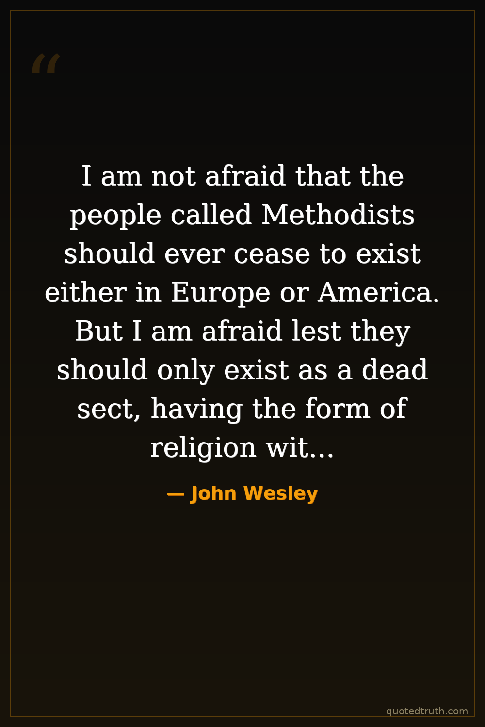 I am not afraid that the people called Methodists should ever cease to exist either in Europe or America. But I am afraid lest they should only exist as a dead sect, having the form of religion without the power.