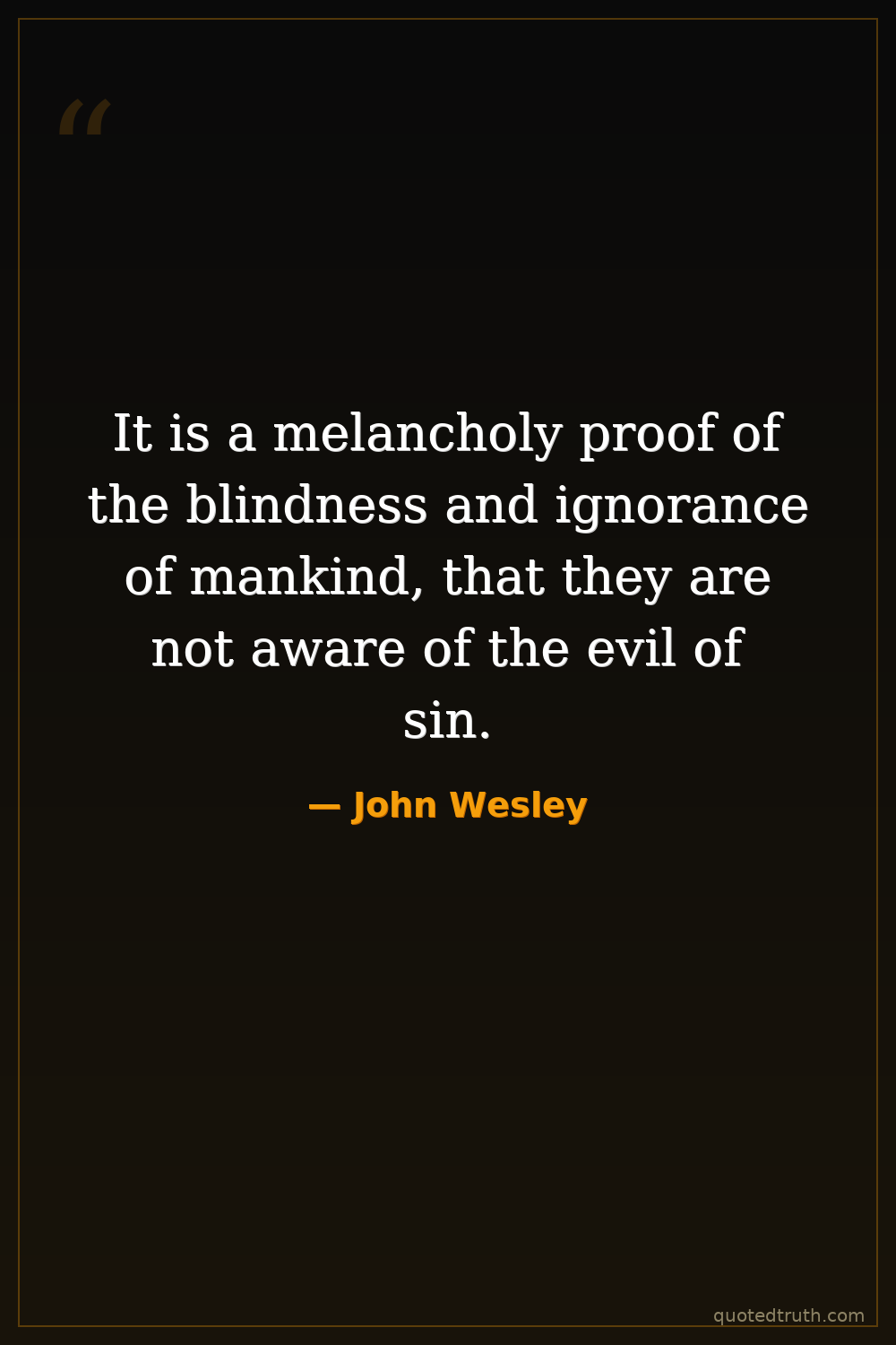 It is a melancholy proof of the blindness and ignorance of mankind, that they are not aware of the evil of sin.