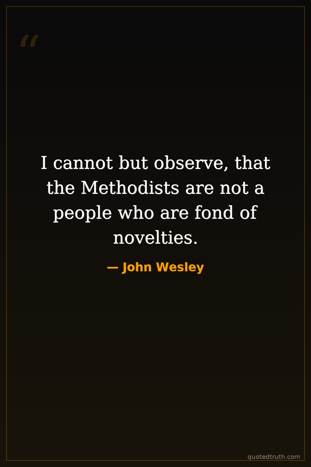 I cannot but observe, that the Methodists are not a people who are fond of novelties.