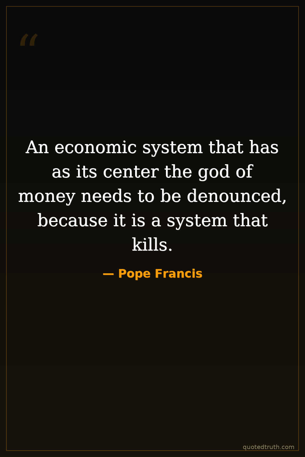 An economic system that has as its center the god of money needs to be denounced, because it is a system that kills.
