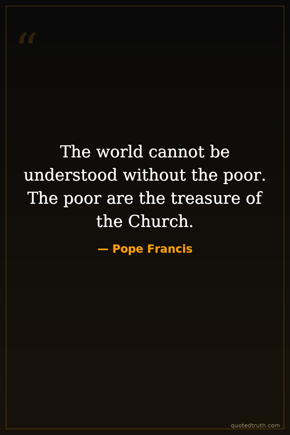 The world cannot be understood without the poor. The poor are the treasure of the Church.