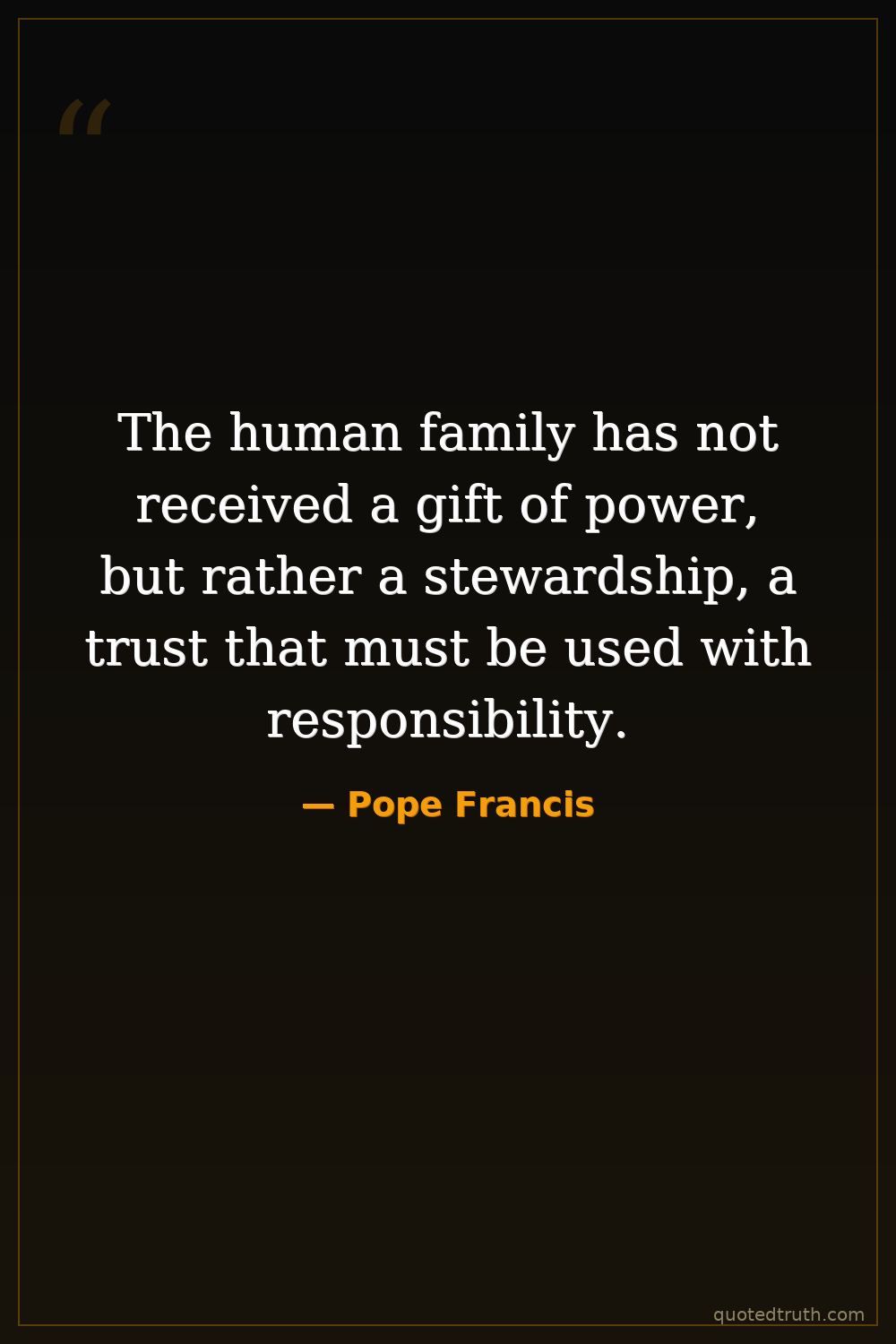 The human family has not received a gift of power, but rather a stewardship, a trust that must be used with responsibility.
