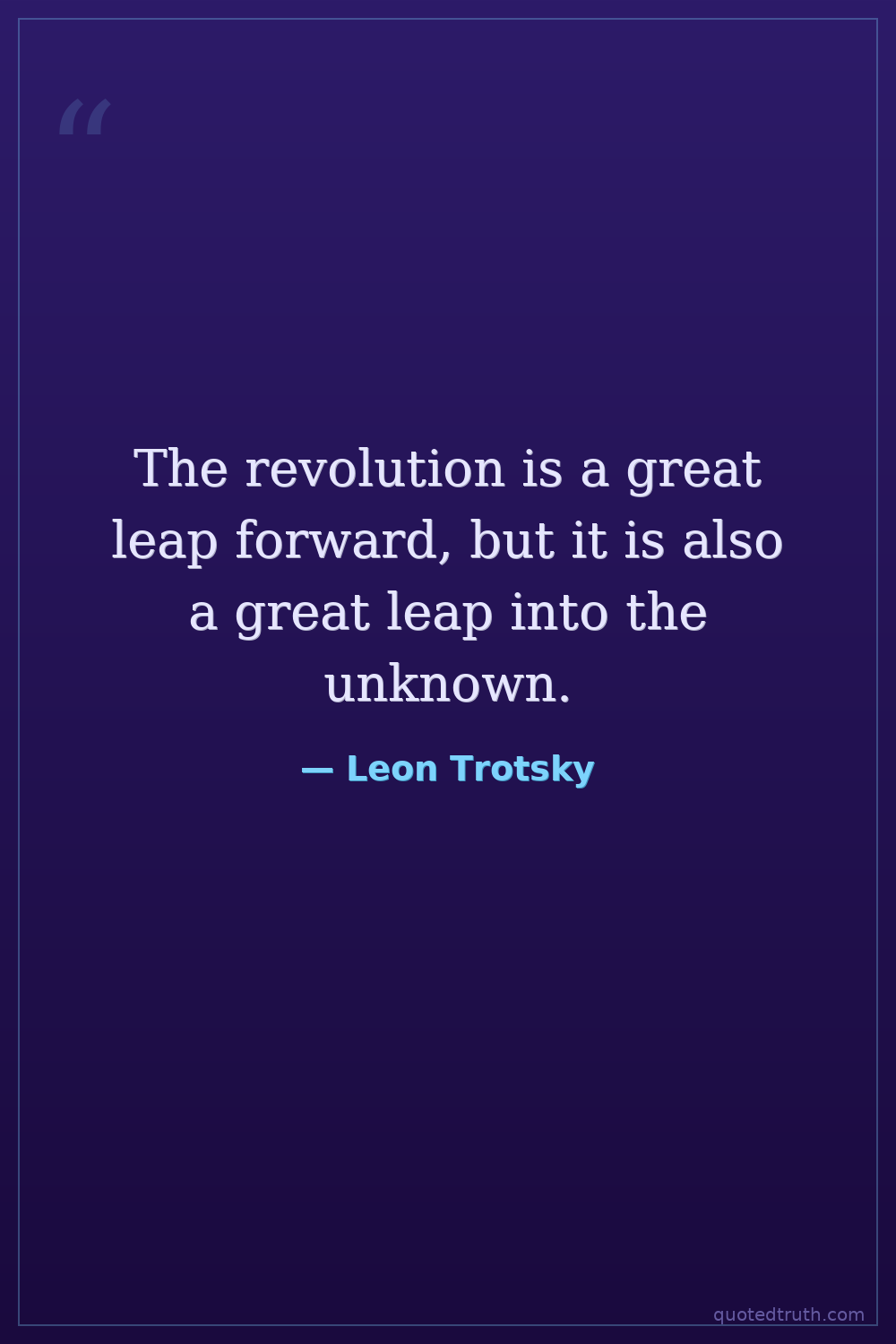 Controversial"The permanent revolution, in the Marxian sense, means that the complete, decisive, and radical solution of the tasks of the democratic revolution is conceivable only through the dictatorship of the pr…"