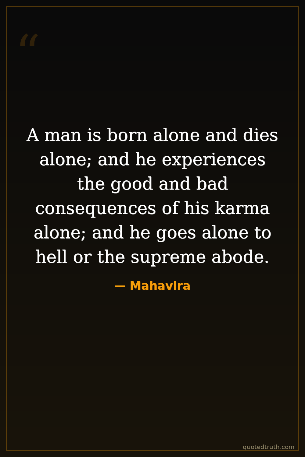 A man is born alone and dies alone; and he experiences the good and bad consequences of his karma alone; and he goes alone to hell or the supreme abode.