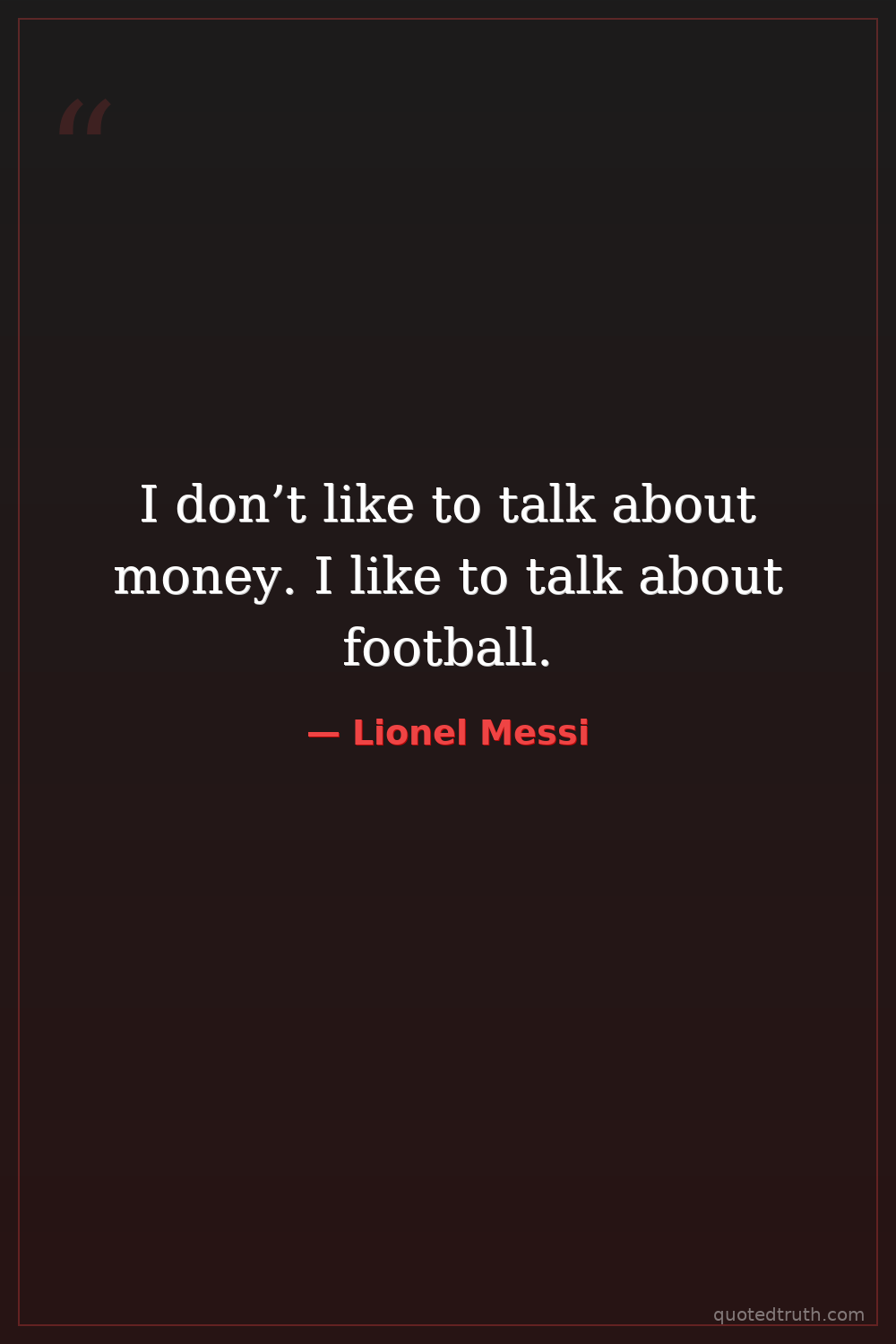 I don’t like to talk about money. I like to talk about football.