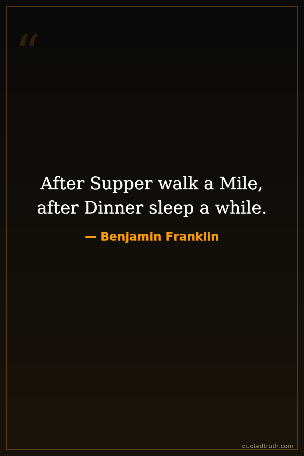 After Supper walk a Mile, after Dinner sleep a while.