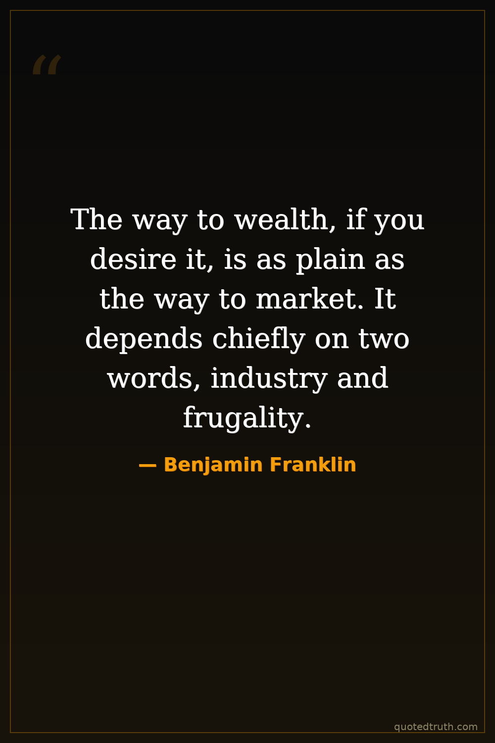 The way to wealth, if you desire it, is as plain as the way to market. It depends chiefly on two words, industry and frugality.