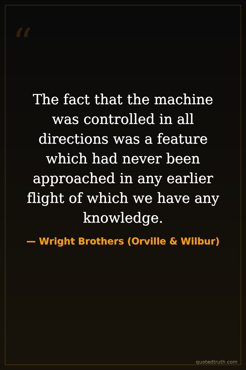The fact that the machine was controlled in all directions was a feature which had never been approached in any earlier flight of which we have any knowledge.